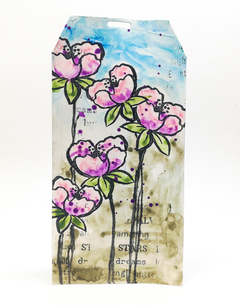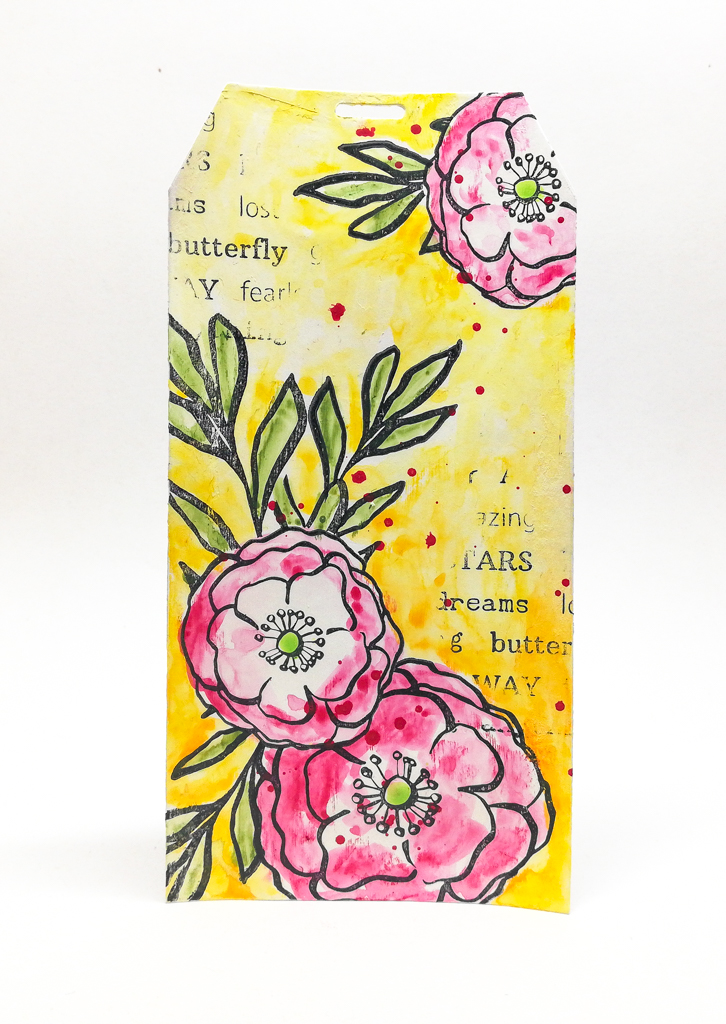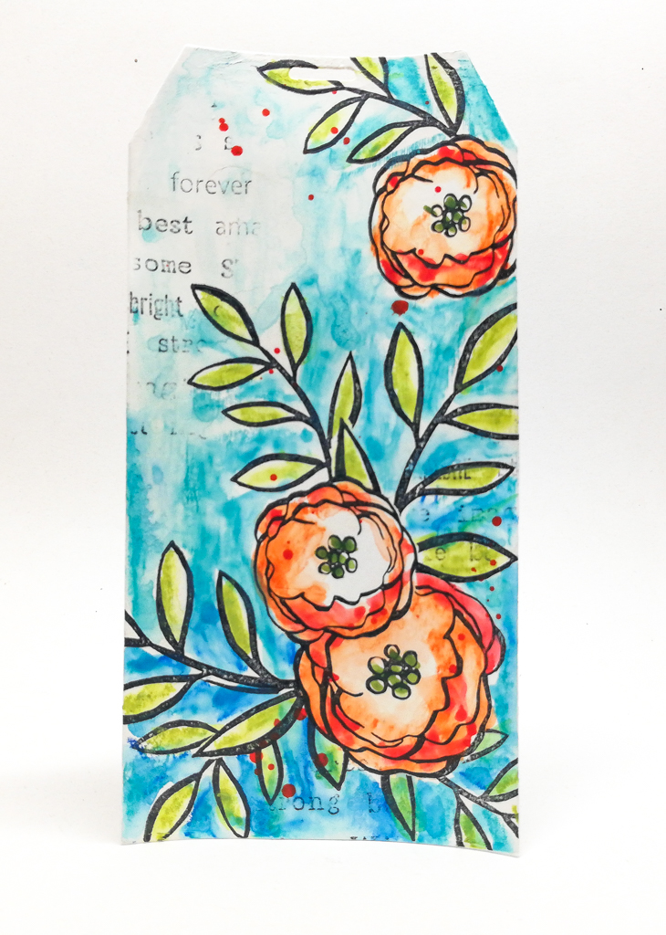 For a bit more texture on the background I used the Mix A Sentiment stamp and stamped it randomly in small areas on the tags.