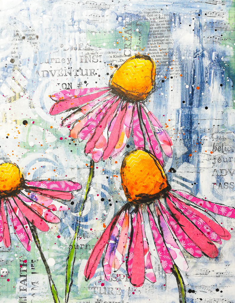I’m sharing a mixed media collage on canvas today. It measures 12 x 12 inches. This is a very easy tutorial perfect for beginners. I recreated a watercolor page from my art journal.