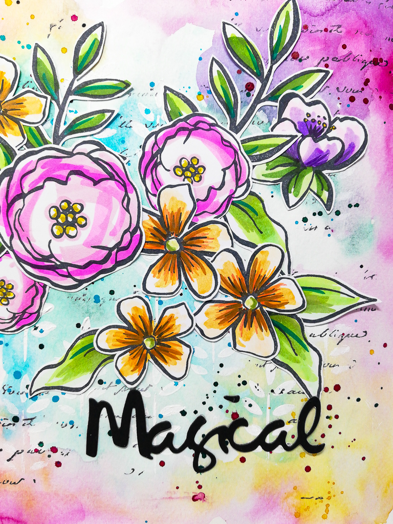 I’m sharing a watercolor art journal page today with a rainbow background. It’s a very easy way to create a background. I also used a stencil together with white gesso for some extra texture. Instead of the flowers I’ve used you can use any kind of flowers.