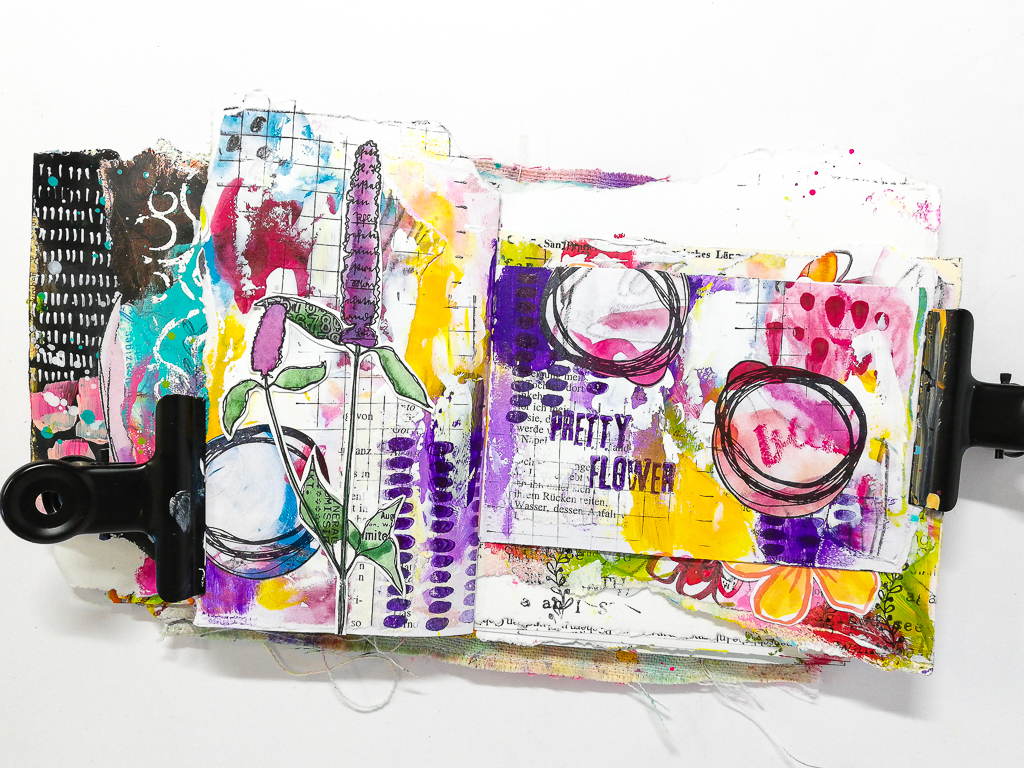 Yesterday we had a new release over at Rubber Dance. There are seven brand new amazing stamps sets! All sets are 10% off until April 19th 2020. I used the Mixed Media Marks and Flowers Gone Wild on todays art journal spread. I also used one of my free printables.