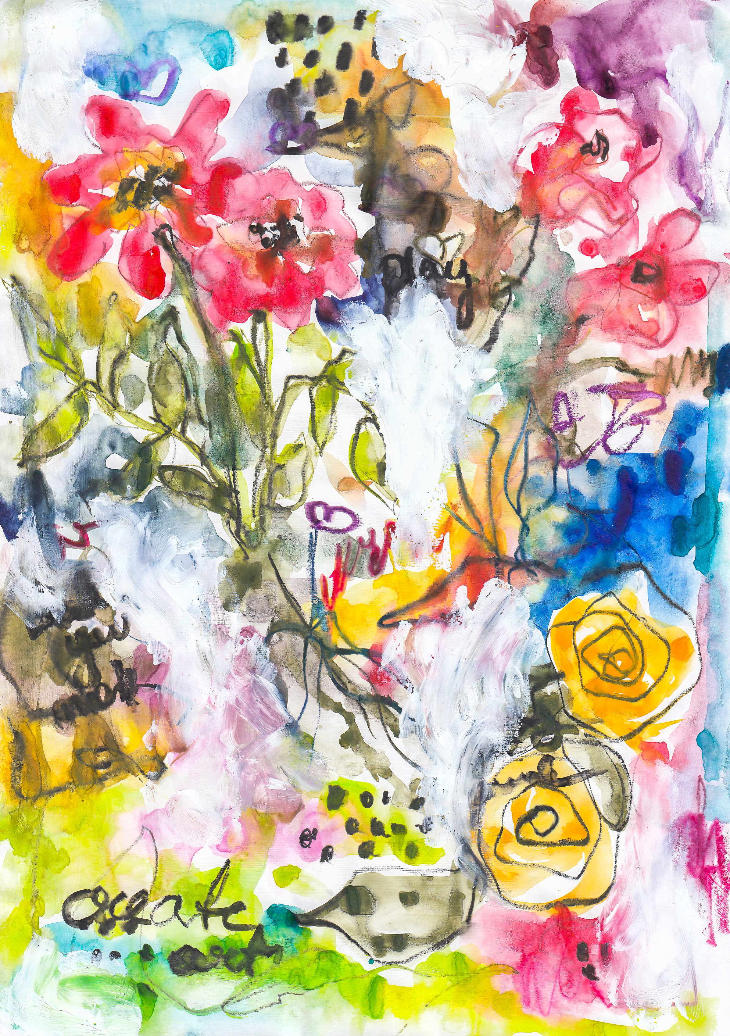 Today I am sharing kind of a whimsical art journal page using some of my free printables. I am creating mainly with acrylic paints and oil pastels. Of course I also use some stamping to create more interest on the art work. As it’s Friday today you will also find a new free printable collage paper.
