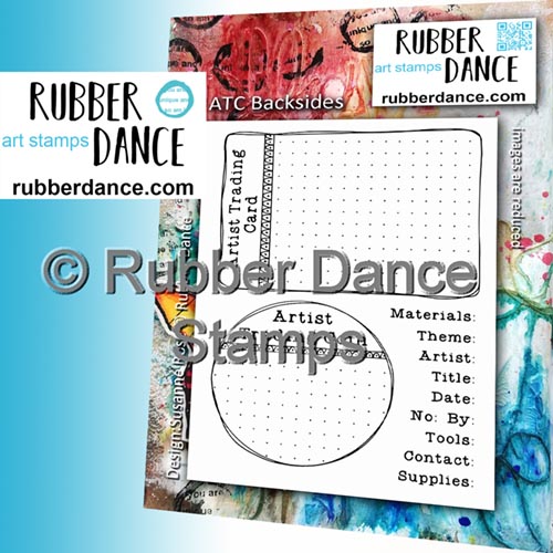 Today I’m sharing an artist trading card (ATC) tutorial. I used scrapbooking paper for my base and covered it with acrlyic paints. I use a stencil and stamps to create texture on the background. My main images are flower stamps embossed and colored in with watercolors. (Embossing Resist Technique). I used one of my new stamp sets (ATC Backsides) to make the backside of the ATCs. So I can add my name and a short description with materials.