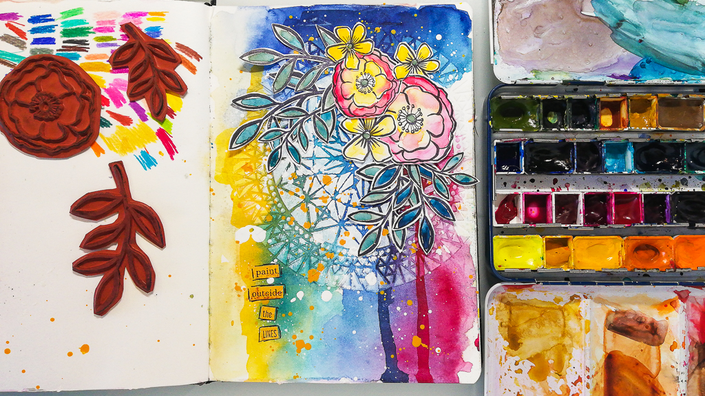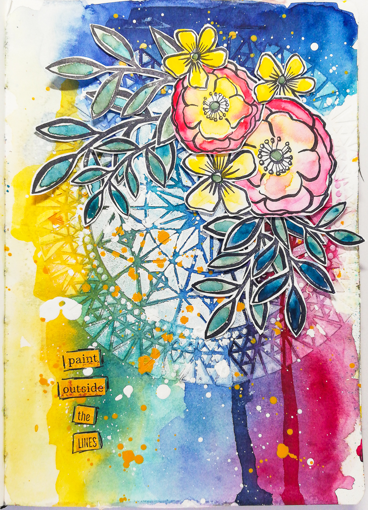 Today I am creating a super easy art journal page for beginners. I am working with texture paste and a stencil and also with watercolors. My focal point is a flower bouquet I arranged with some of my Loose Floral stamps.