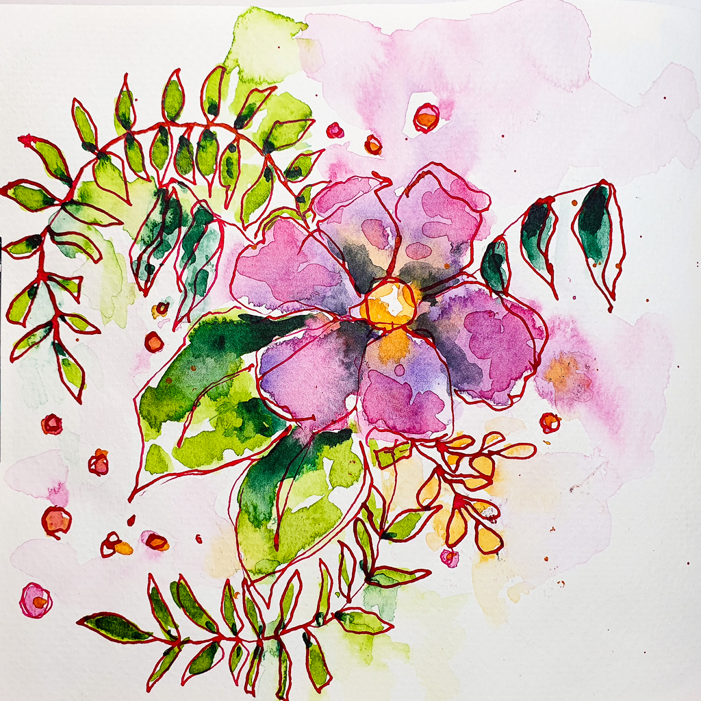 I love to paint loose and sketchy flowers with watercolors. I believe this is something everybody can do without having much knowledge about watercolor painting. I really enjoy the process and it’s always something you can fit into a busy day.