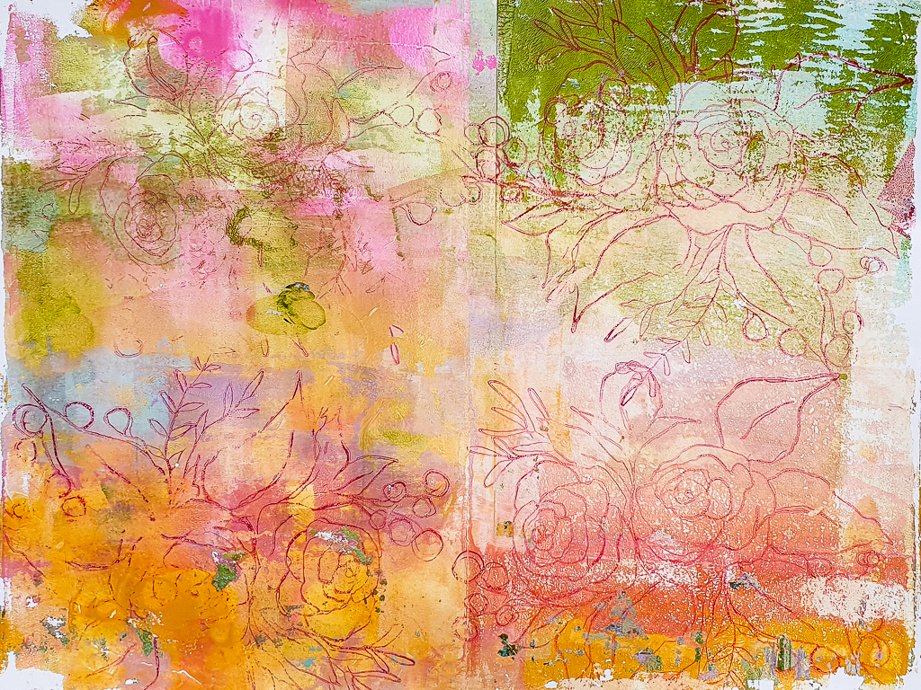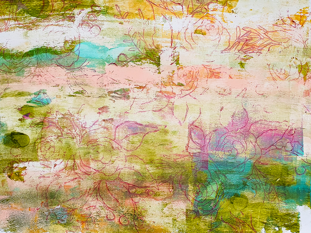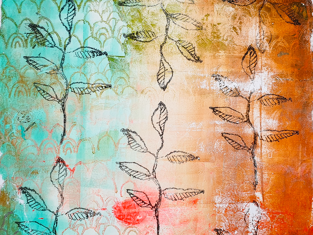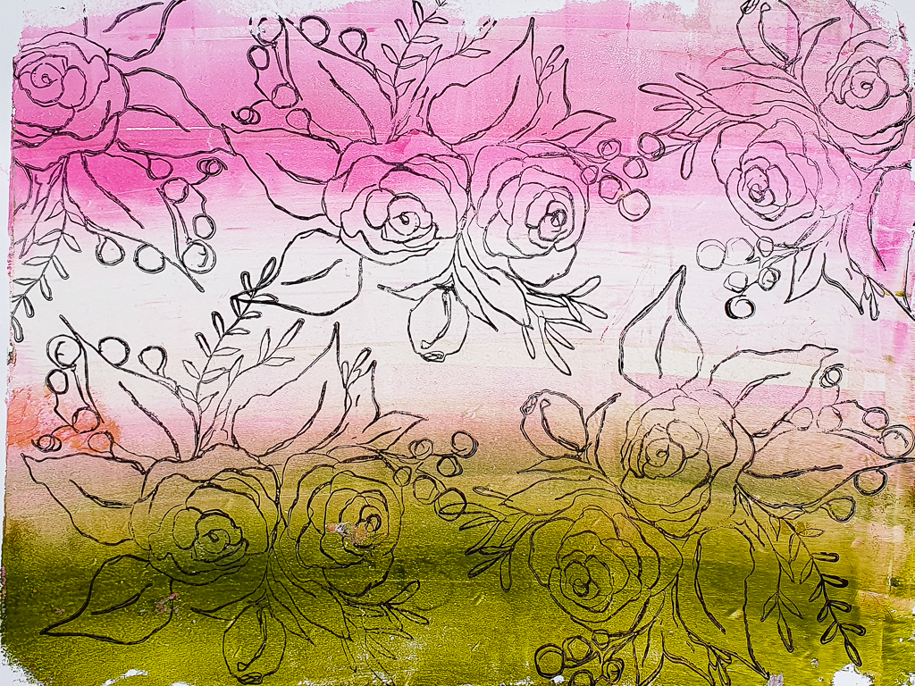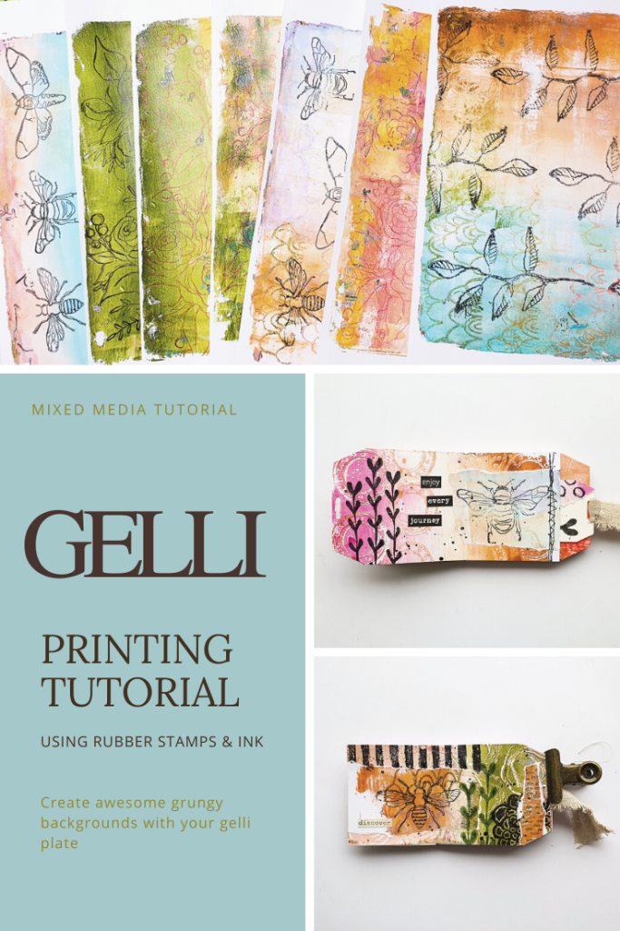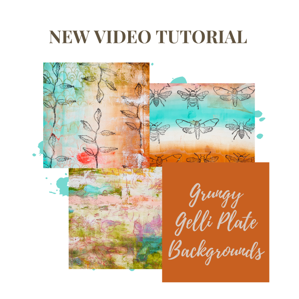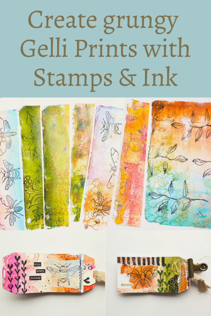 I’m making some gelli prints today by stamping some images with StazOn ink onto my gelli plate first. This creates some gorgeous grungy backgrounds. Perfect for art journaling or other mixed media projects. I also love to use those prints for cardmaking.