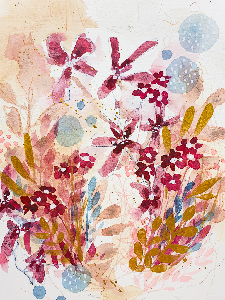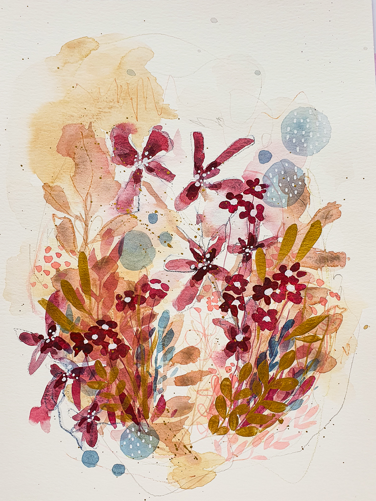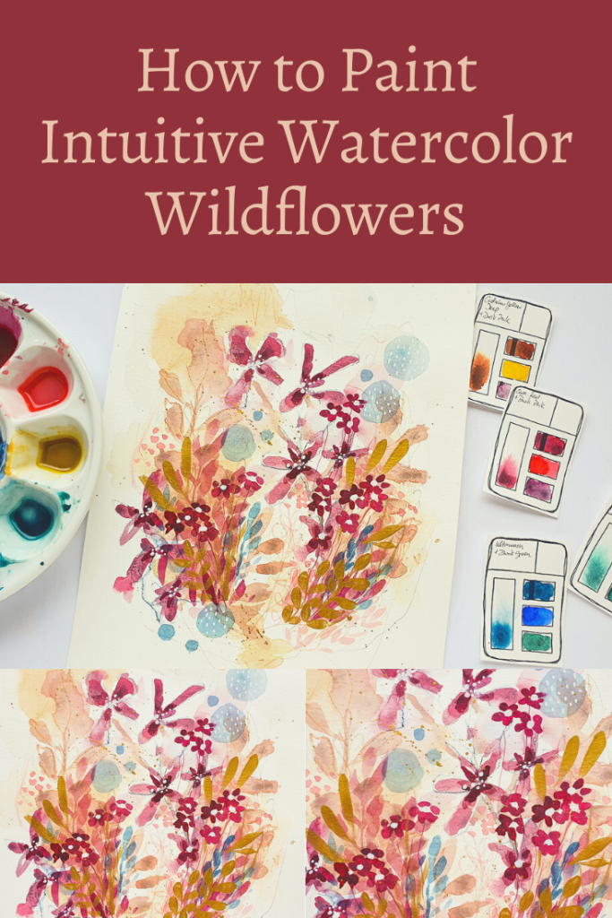 I watched a Skillshare Class from Suzanne Allard and was immediately inspired to do some abstract intuitive watercolor painting. I painted some watercolor wildflowers using a, for me, unusual color palette. If you’d like to try out Skillshare Premium 2 weeks for free you will find a link at the end of this blog post.