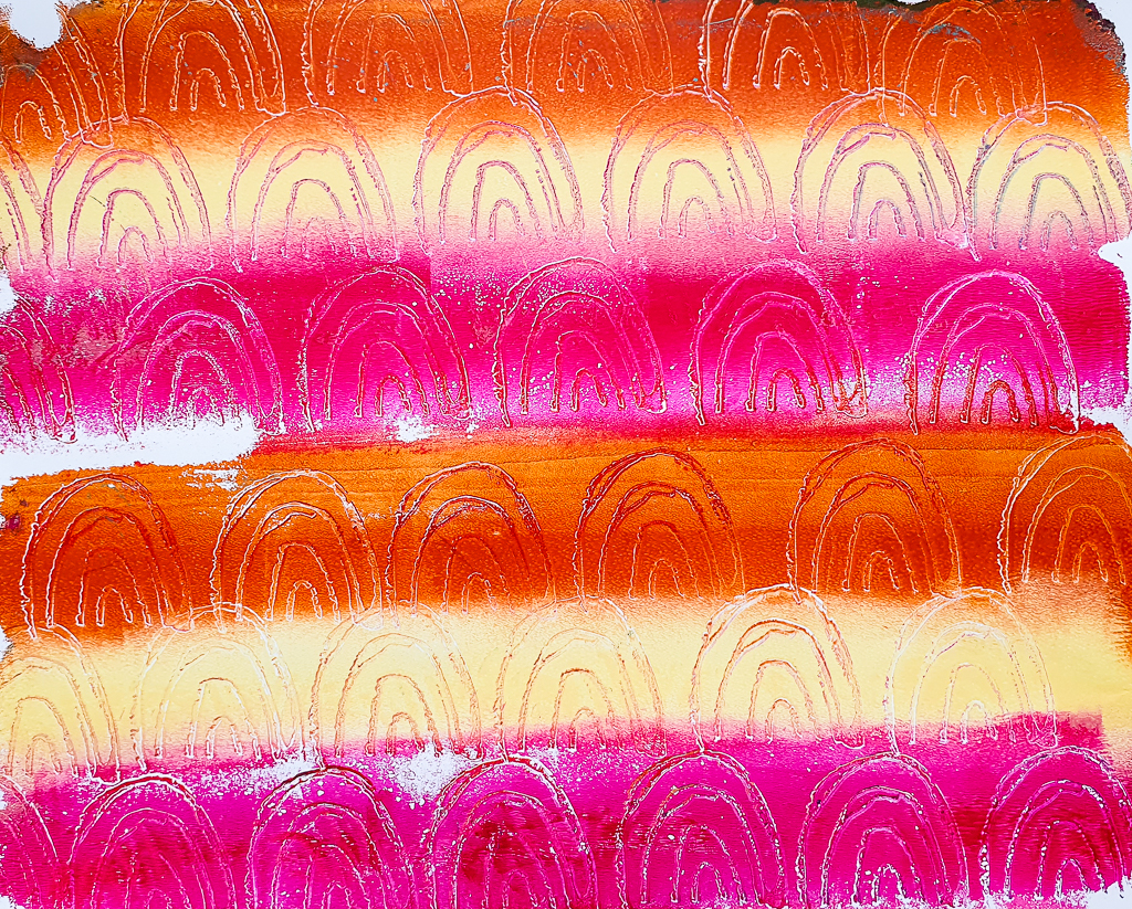 I am making some gelli prints today using some of my brand new stamps. I am working with acrylic paints and the 20cm x 25cm gelli printing plate. I love to use those prints a card backgrounds or for collaging.