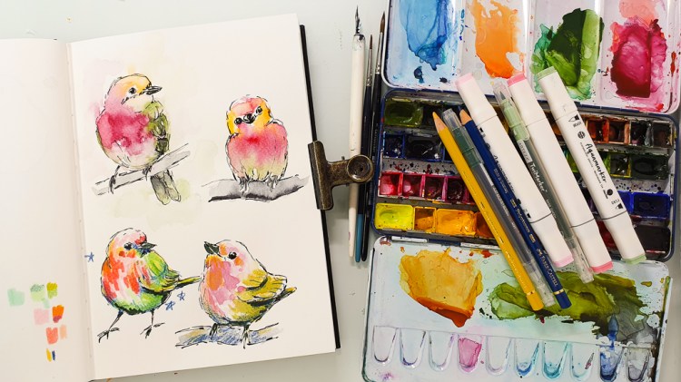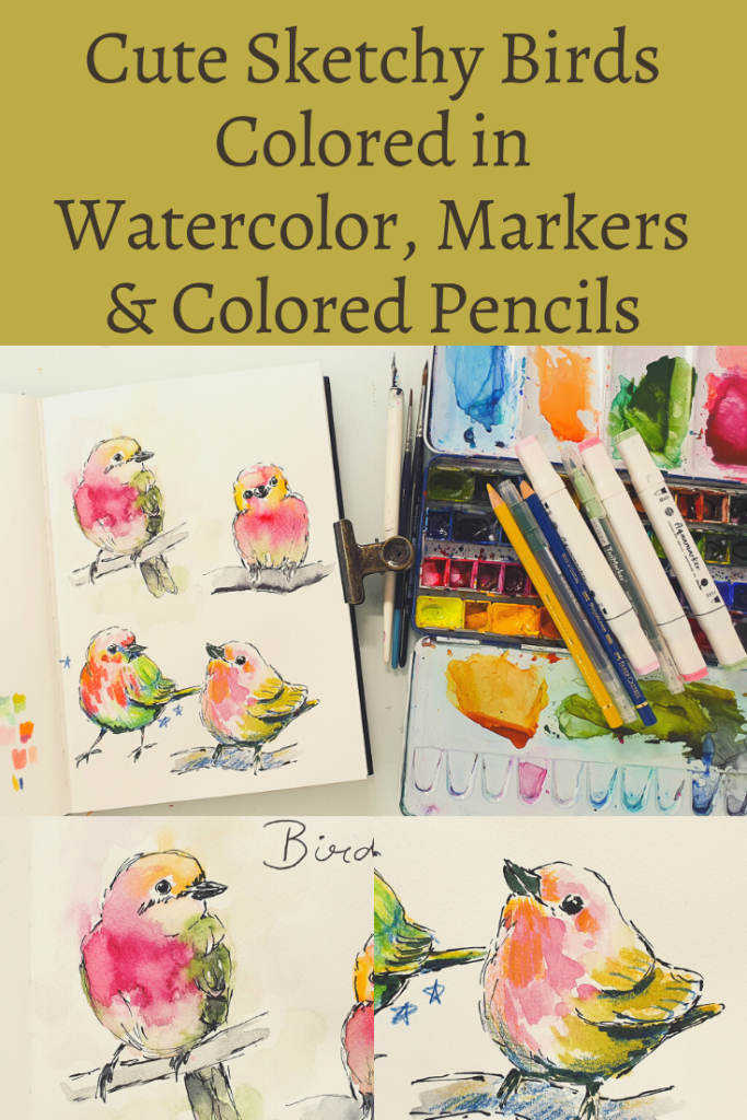 Instead of a flower painting tutorial I am sharing some bird sketches today. I am using drawing ink to sketch these birds. For coloring I am using watercolors, markers and colored pencils.