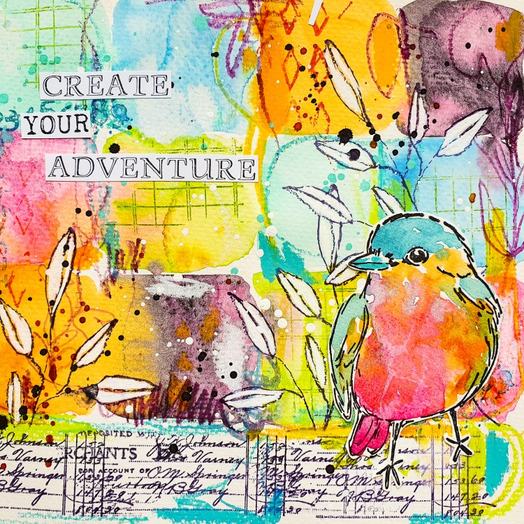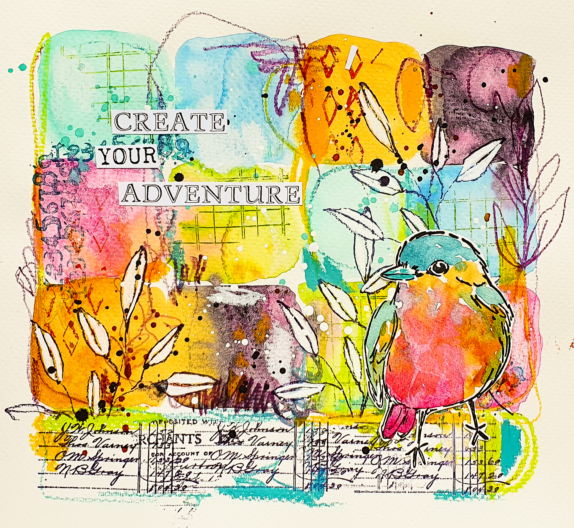 On today’s abstract watercolor art journal spread I am playing with some of my new stamps. I really enjoy these kinf of spreads, as they are kind of a creativity booster if you have an art block. They are working just like a recipe and I am able to play with my watercolors, explore them a little bit more and work with some of my stamps.