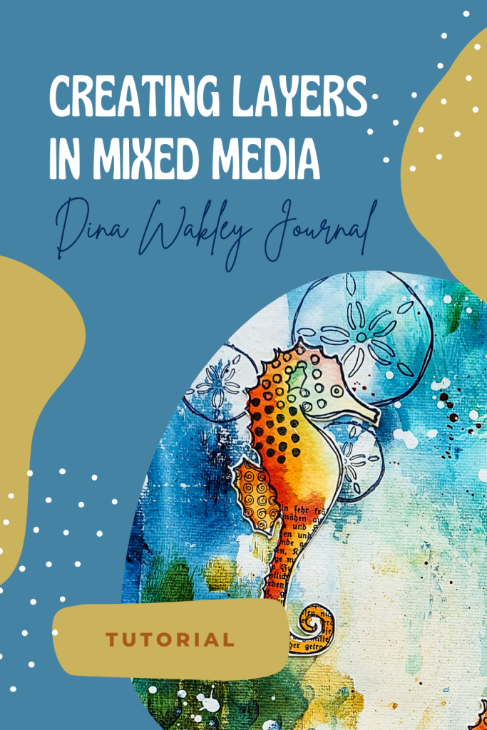 Today’s spread is an ocean themed page with many background layers in my Dina Wakley Media Journal. I love this journal to create spreads with stamps and stencils. I mainly used stamps from the Rubber Dance Textured Sea Creatures. These are awesome for nautical spreads.