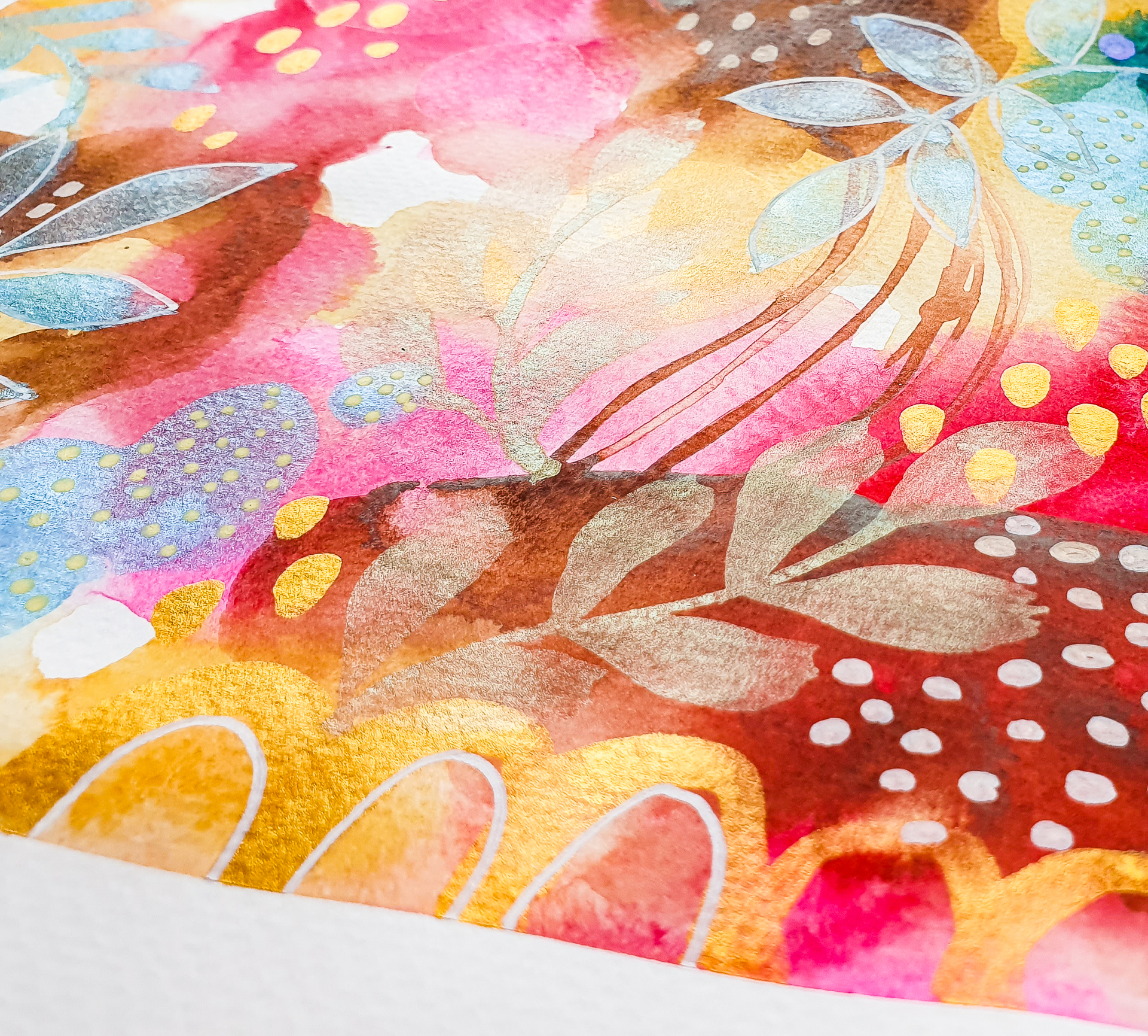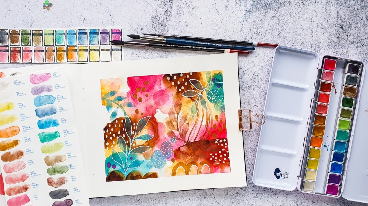 Today I am reviewing the Paul Rubens Metallic Watercolors and I will use them on my abstract watercolor painting today. [Advertising] The company Arrtx was so kind and asked me, if I’d be interested in trying out their 24 set of metallic watercolors. I really enjoyed working with the paints and will use them in future projects for sure. They have a wonderful shimmer and I really like the color selection. What I also liked was the packaging they came in. I also tried their masking tape and it gave me a nice clean border around the painting.