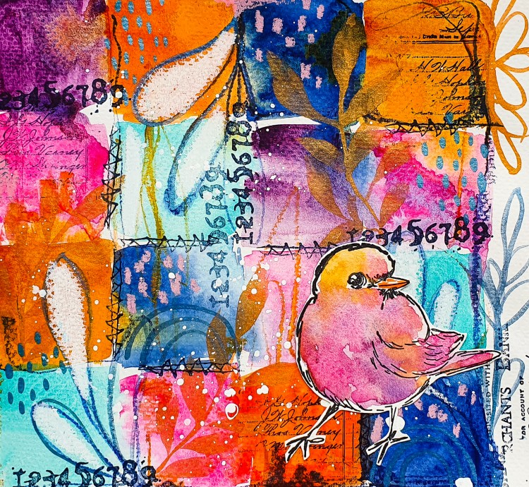 On today’s abstract watercolor art journal spread I am playing with the black tulip brushes which were kindly sent to me from Zen Art Supplies. I really enjoy these kinf of spreads, as they are kind of a creativity booster if you have an art block. They are working just like a recipe and I am able to play with my watercolors, explore them a little bit more and work with some of my stamps.