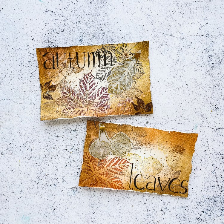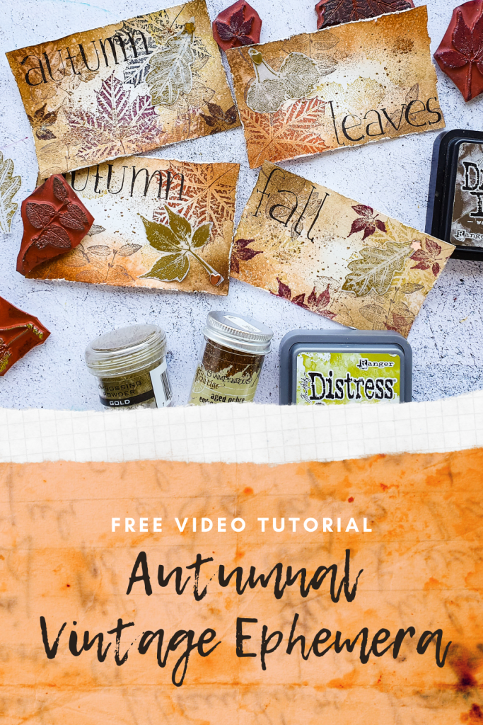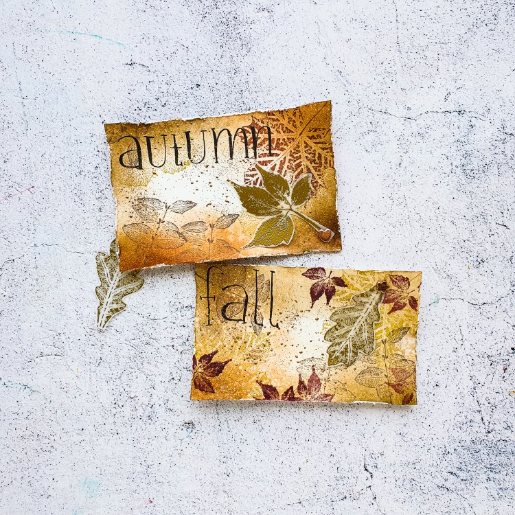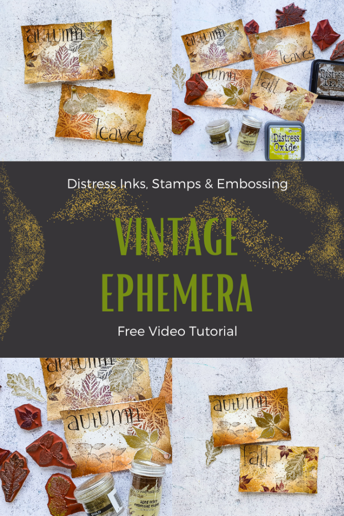 Today I am creating some vintage looking autumnal ephemera cards with Distress Inks, Oxides, some stamps and embossing powders. I really like to use these kind of cards for junk journals, to add to happy mail or as gift tags.