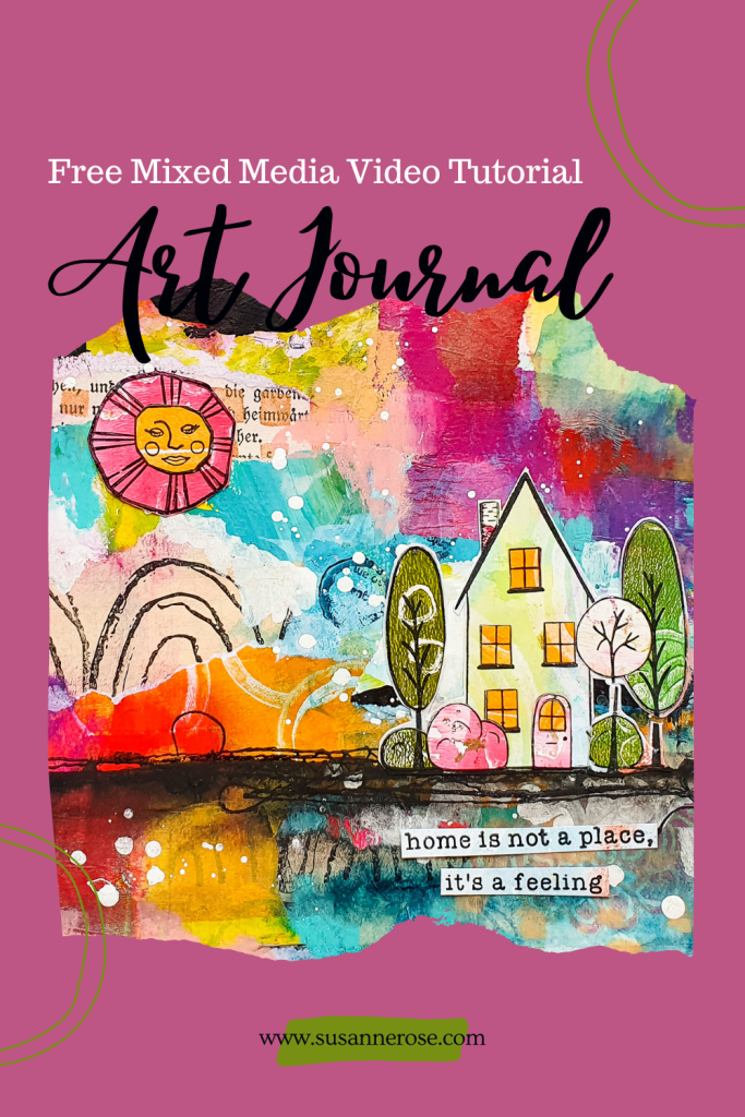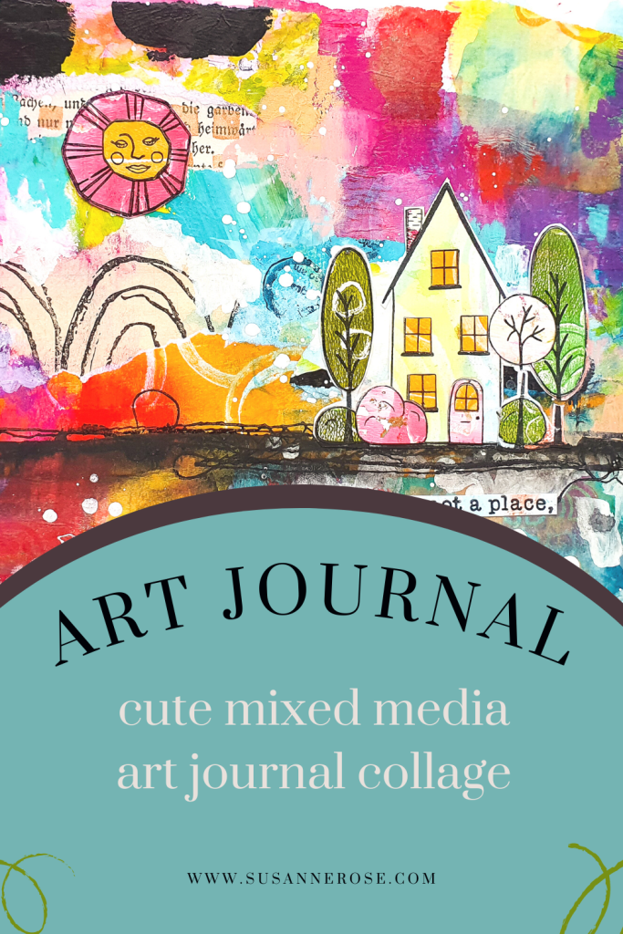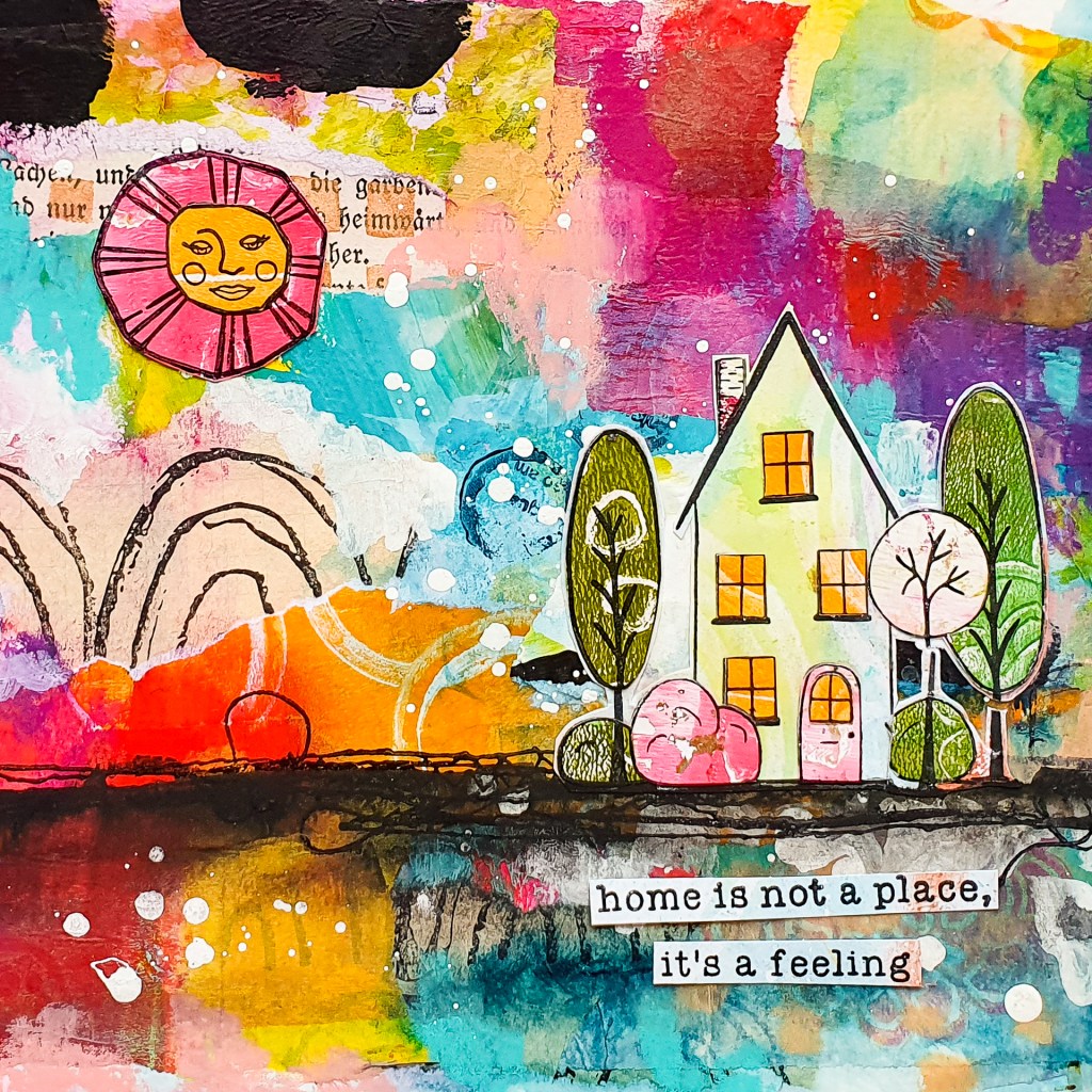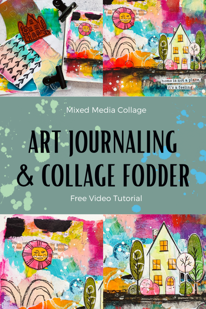 For today’s art journal collage I am using some of my handmade collage papers. I decided to create a little scene with one of my house stamps.