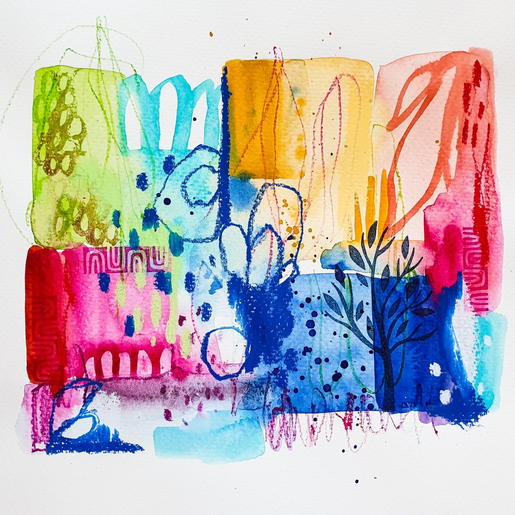 To get my creative juices flowing, I often create these kind of art journal pages. They are super simple and don’t take much time. They also fit perfectly into a busy day. Today I am working with watercolors, Derwent Inktense Pencils and Neocolor II Crayons. I also use some of the brand new stamps from our new release. It will be available in the store soon.