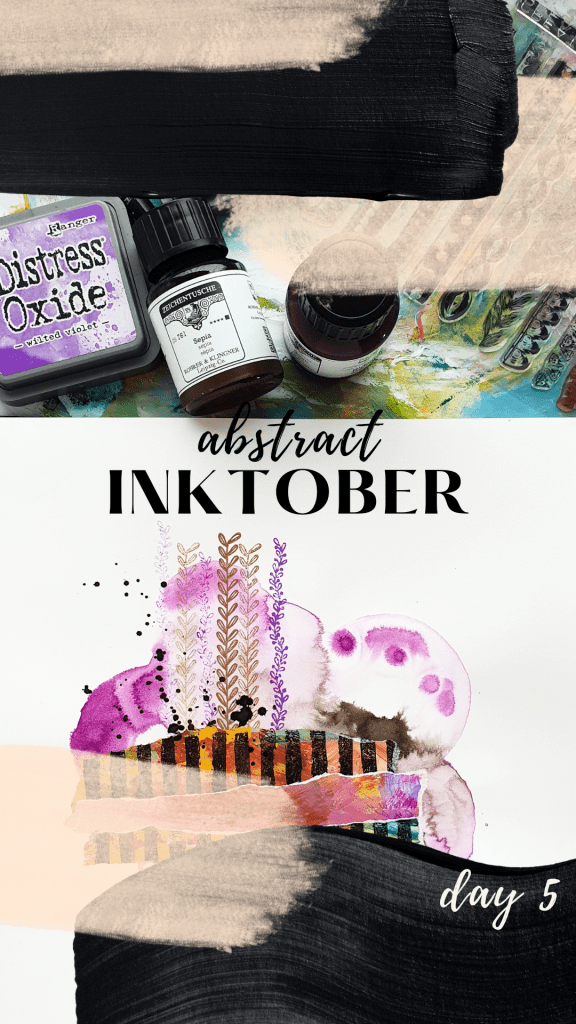 Inktober Day 5 – an abstract mixed media collage using at least one ink product. Scroll down for a quick process clip.