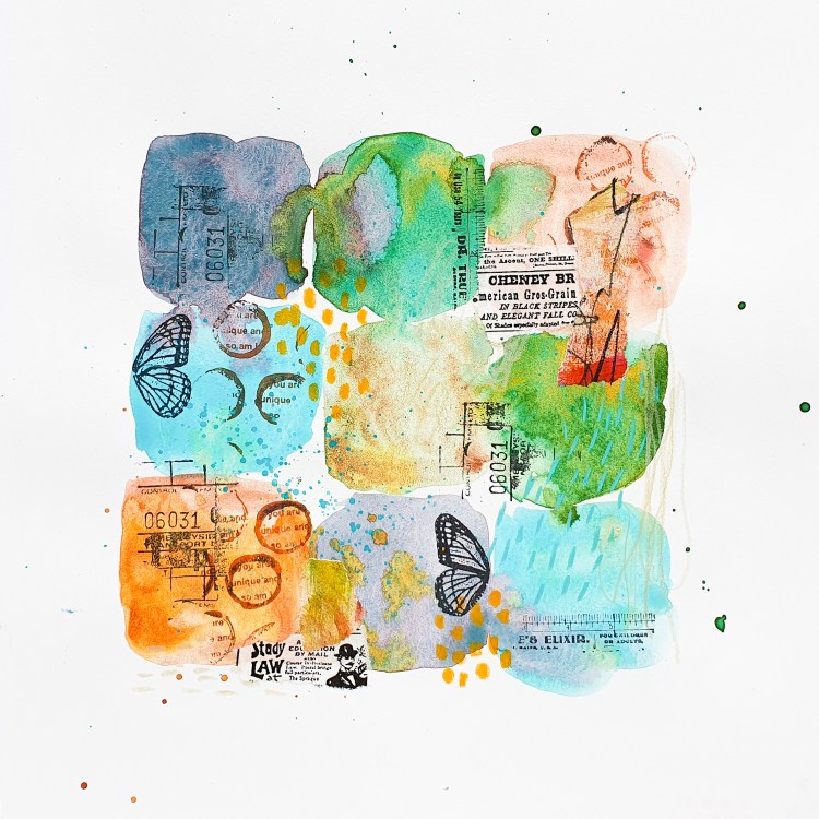 Inktober Day 13 – abstract watercolor grid… I added texture with stamps from Collage Elements and Grungy Circles
