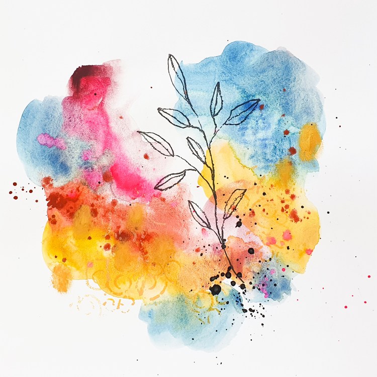 Inktober Tag 18 – Abstraktes Aquarell mit einigen Mark Makings und ein biΓchen was gestempeltem aus dem Pencil Marks 3 Set.