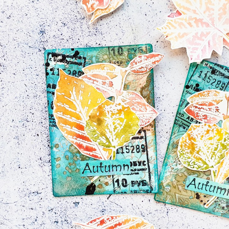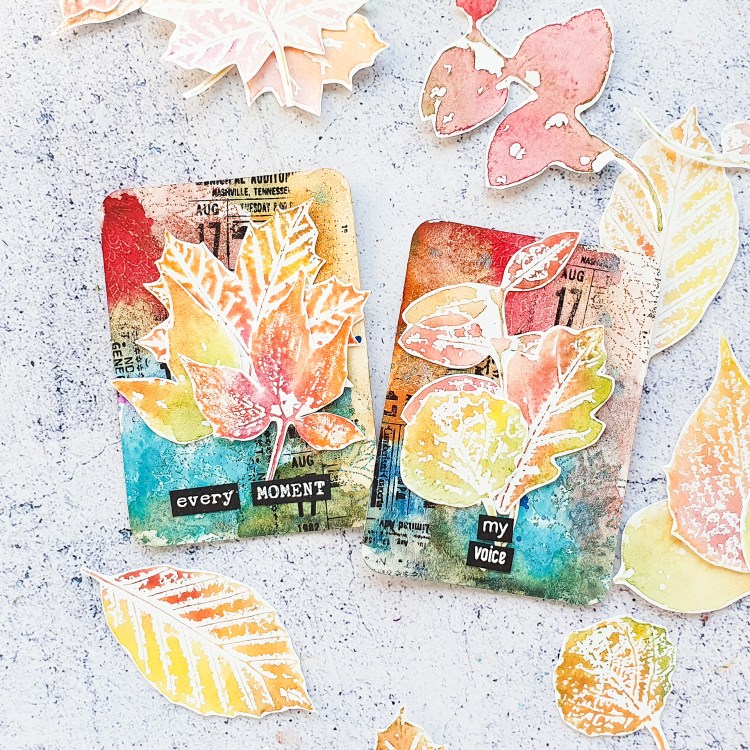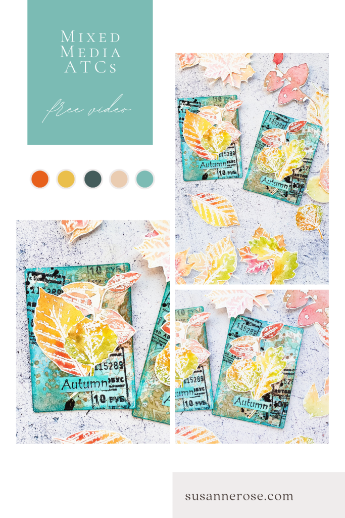 I’m sharing a new process video to inspire you over on my YouTube channel today. I am creating a pair of ATCs (Artist Trading Cards) using the embossing resist technique together with Distress Inks for the background. I am decorating the cards with some stamped collage fodder. I’m making some autumn leaves using our “I Love Leaves” and “Twiggy Leaves” stamp sets together with water-soluble pencils. This creates a super lovely watercolor effect.