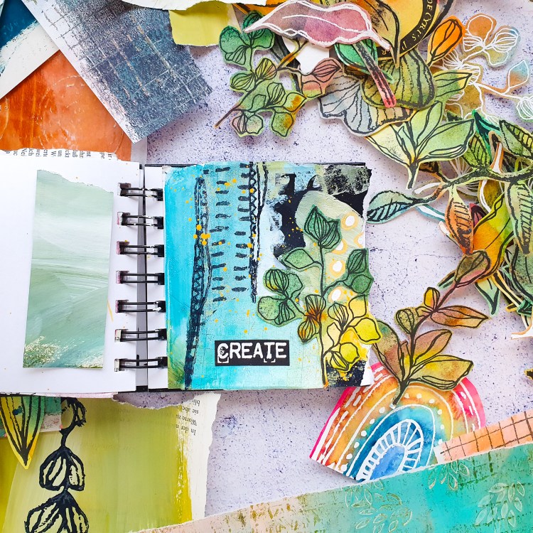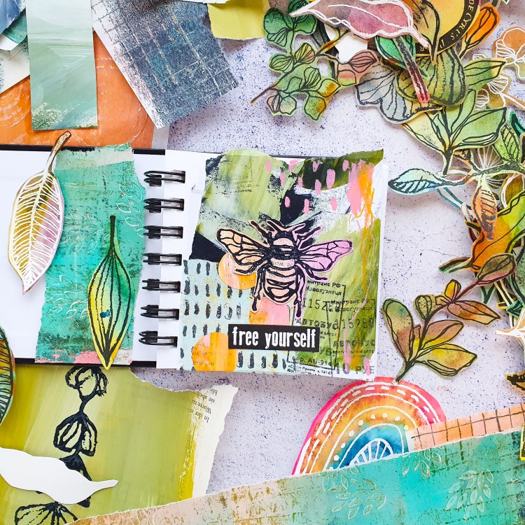 These collage pieces are fabulous to prepare ahead, so you have always something to work with! Scroll down for a quick video on how I made them. I used the Sketchy Leaves stamp set.