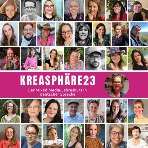 Es ist endlich wieder soweit! Ab dem 1. Februar könnt Ihr euch zur Kreasphäre 23 anmelden (Einen Link findest du in meinen Highlights)! Dem einzigen deutschsprachigen Jahreskurs im Bereich Mixed Media! Hier findest du sämtliche Themen im Bereich Art Journaling, Sketching, Abstrakte Kunst, Intuitive Malerei und vieles mehr!