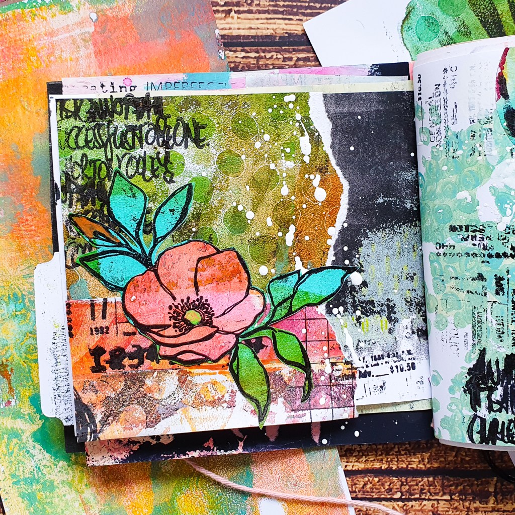 Hi everyone! A few weeks ago I shared a full tutorial on how to make your own art journal and today I am going to create another page in it. I am using gelli prints, some stamps and handmade ephemera, such as handmade washi tape and stickers. My book itselfe is mainly filled with gelli prints, it’s nice way to use them. A video for it is here: https://youtu.be/I7wDcHxc1iw Here is a video about the washi tape: https://www.instagram.com/p/CsqunoXIEAv/