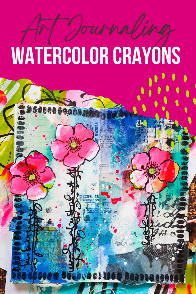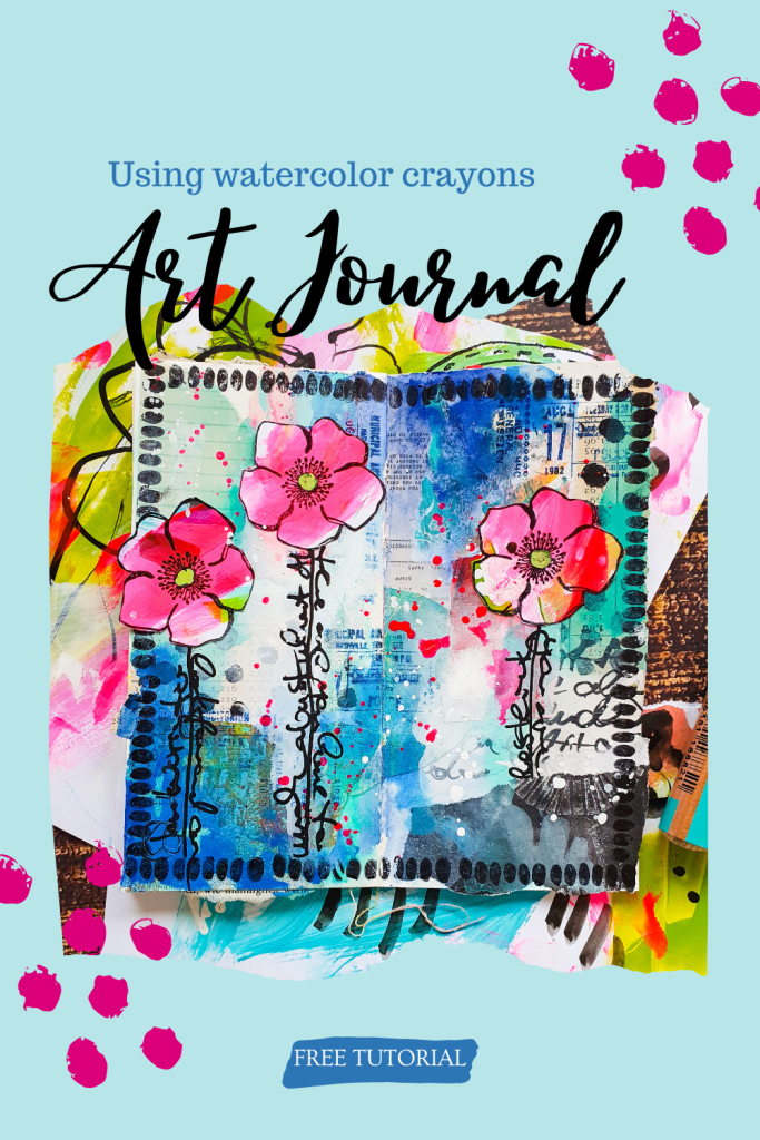 Hi everyone! If you are a beginner in art journaling and you might not have many supplies, or you are wondering which supplies to start with, this video is for you. We are creating a spread in a handmade mixed media art journal using collage and watercolor crayons such as Stabilo Woodys or Neocolors. In addition to that I am using a simple stencil and some of our stamps (available at rubberdance.com).