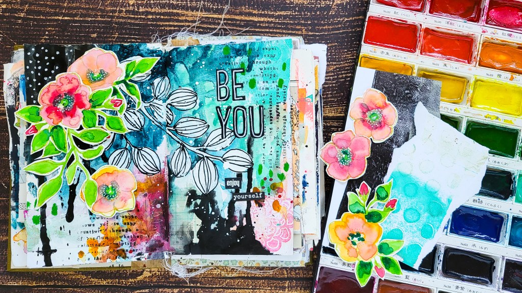 Hallo ihr Lieben. Heute zeige ich eine Mixed Media Seite mit den Gansai Tambi Aquarellfarben im handgemachten Junk Art Journal. Inspiriert wurde ich bei der Arbeit für meinen Kurs im Gratitude Junk Journal Workshop. Ich hatte so viel Spaß beim kreieren im Junk Journal, dass ich gleich noch eine Seite gestalten wollte. Details zum Workshop findest du hier. Mit dem Code HAPPY23 kannst du 20% sparen. Die Registrierung läuft ab morgen den 1. October 2023. Der Kurs selbst startet am 1. November. Er ist englischsprachig.