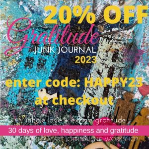 Hi everyone! Today I have an art journaling tutorial for you in my handmade junk art journal. I was inspired to create in here again after I recorded my class for the Gratitude Junk Journaling Workshop