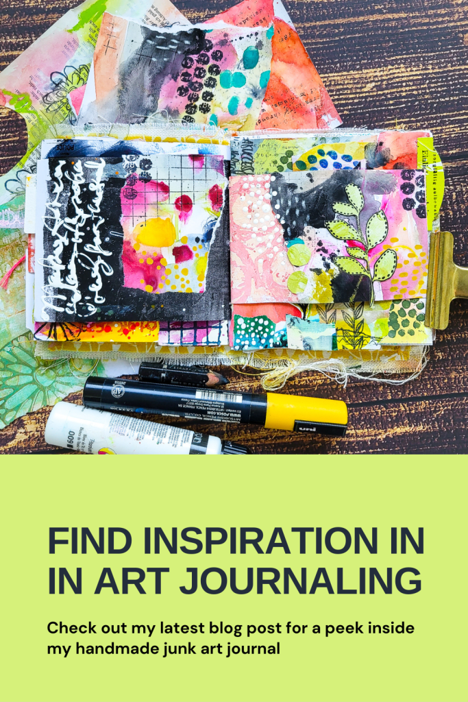 Hi everyone! I’m sharing a spread in one of my handmade junk art journals today using collage and mark making. I was inspired to create in here again after I recorded my class for the Gratitude Junk Journaling Workshop