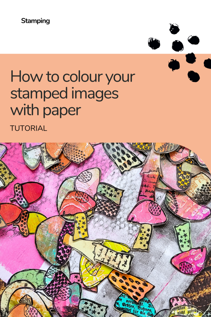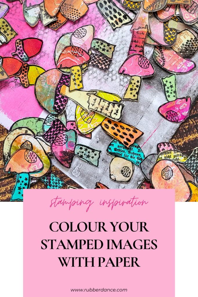 Hi everyone! Today I’m sharing a collage fodder video with my Textured Mushrooms stamp set. It was a cold and gloomy sunday last weekend – that’s the best time to make some collage fodder for your mixed media projects, art journals or other papercrafting creations, like cards or scrapbook layouts. Instead of colouring in the stamped images I am using some of my gelli prints and paper piece the mushrooms.