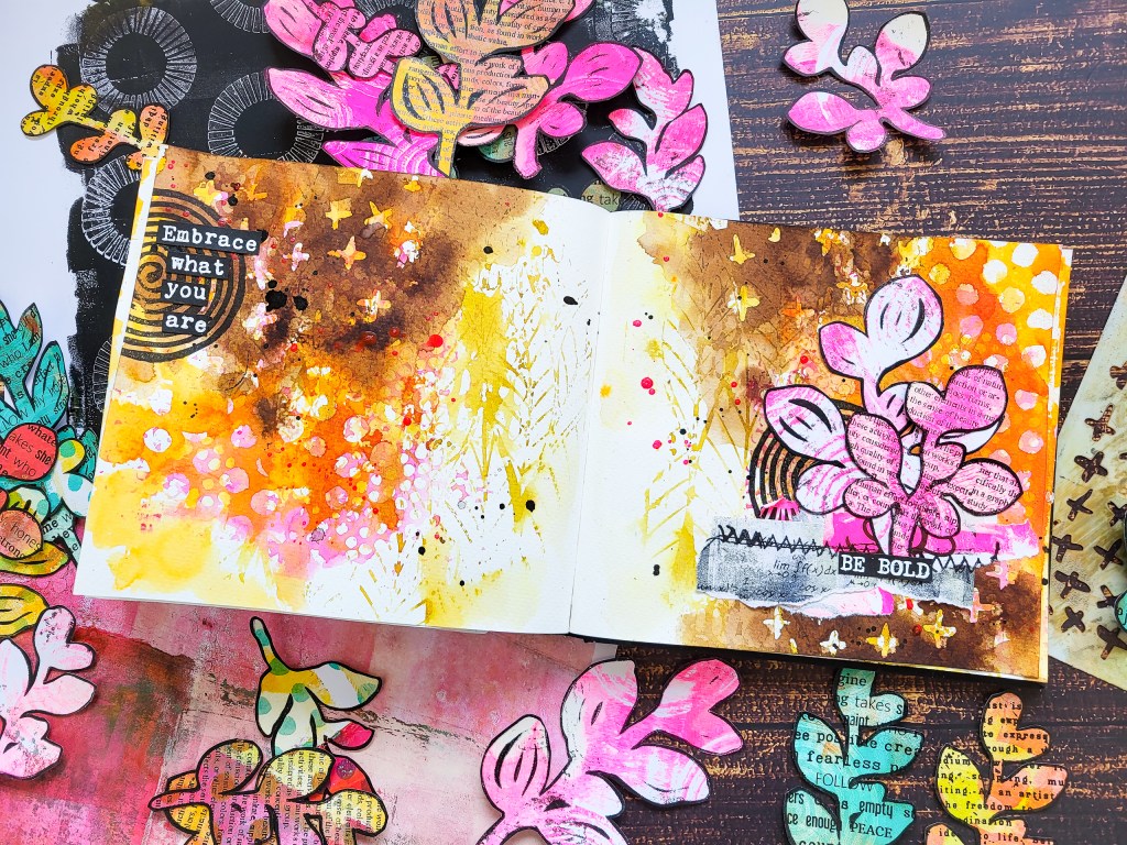 Hi everyone! As I enjoyed this process so much, I am playing in my watercolor journal today again using Distress Inks with some of our new stencils. This technique creates a lovely layered background that can be used not only for art journaling also for other mixed media projects like cards, atcs or tags. Today I wanted to make a spread with some autumnal vibes.