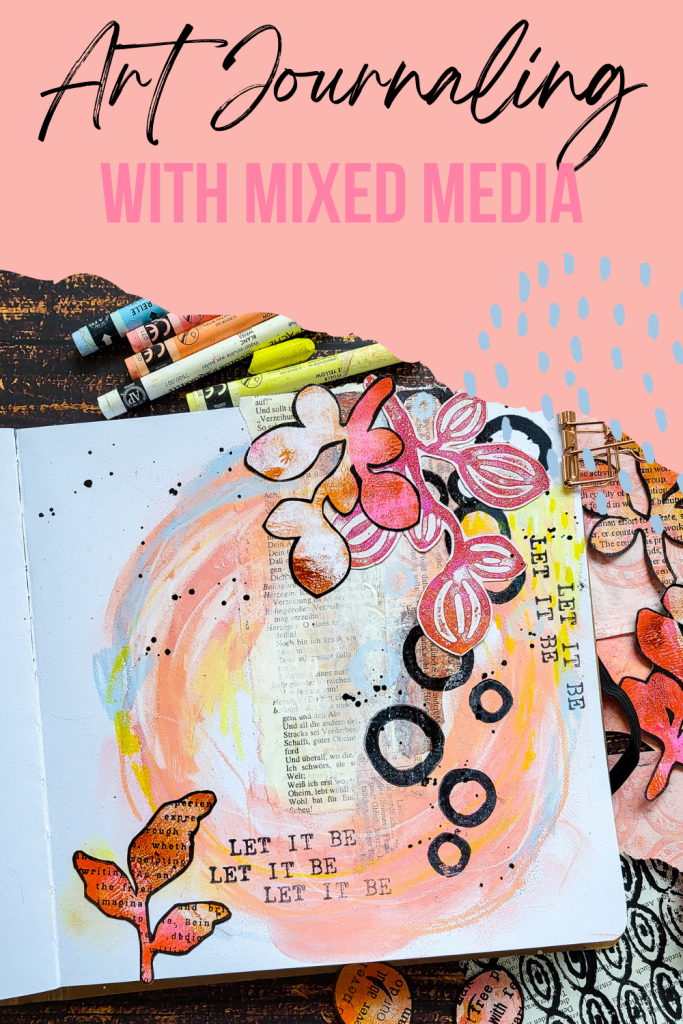 Hi everybody. I am sharing a new art journaling vide today which is perfect for beginners. I am using Neocolor II crayons in my journal from Action, combined with some collage fodder and stamps from Pencil Marks 7. I kept the colors in pastel shades together with some black as contrast. For texture on the spread I adhered some collage papers in neutral colors first.