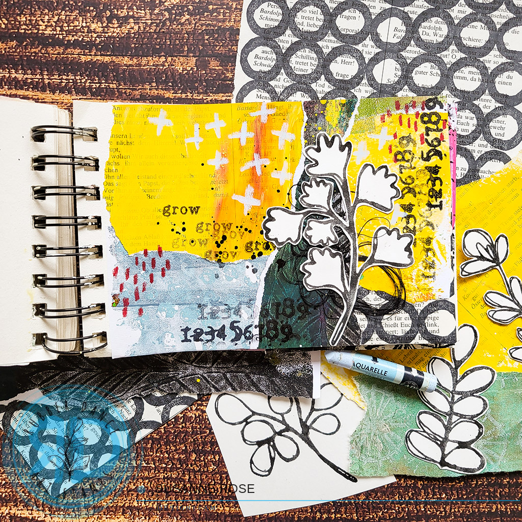 Abstract Art Journal Collage – Tutorial Posted bysusanneroseart8. May 20247. May 2024Posted inArt Journal Pages, Art Journal Tutorial, Collage, Crayons (Neocolor, Woodys), Distress Inks, Mixed Media Projects I’m sharing a quick tutorial on this spread over on our shop blog. Easy Art Journal Collage with Fodder and Mark Making Teilen mit: Click to share on X (Opens in new window) X Click to share on Facebook (Opens in new window) Facebook Like Loading... Ähnliche Beiträge