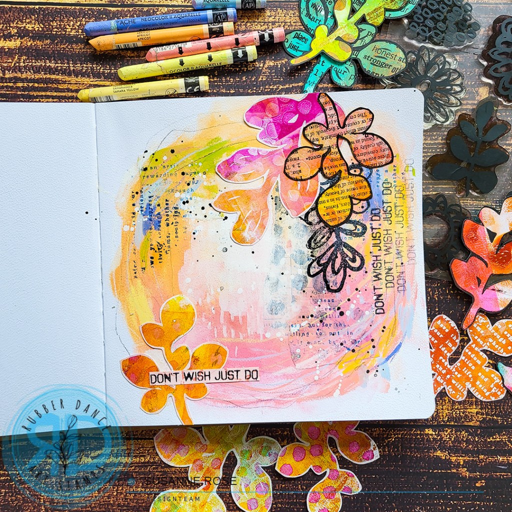 I made this art journal page with a Neocolor background and some collage fodder. A full video tutorial is available over on our shop blog!