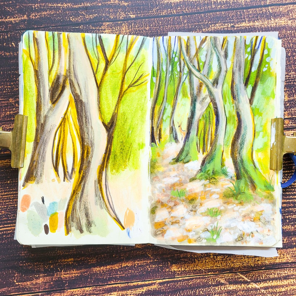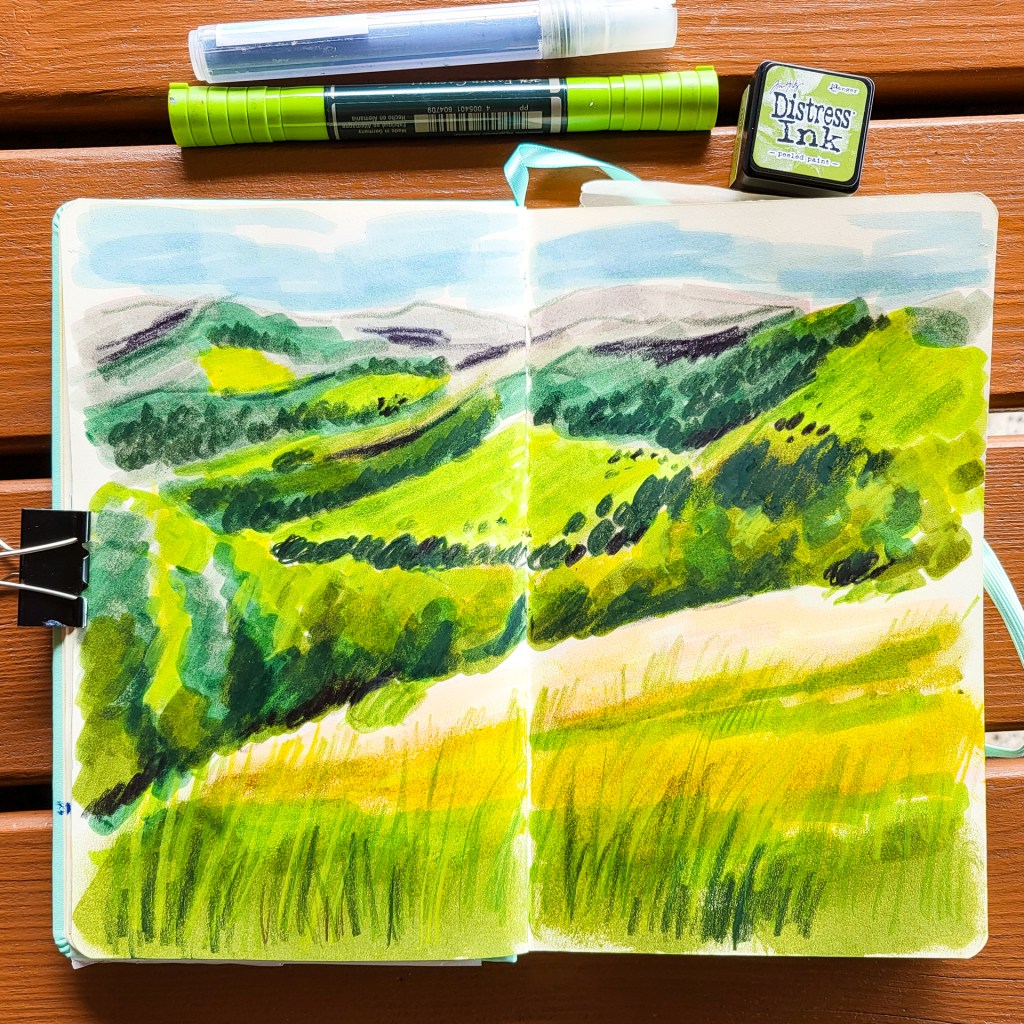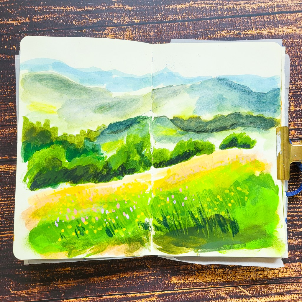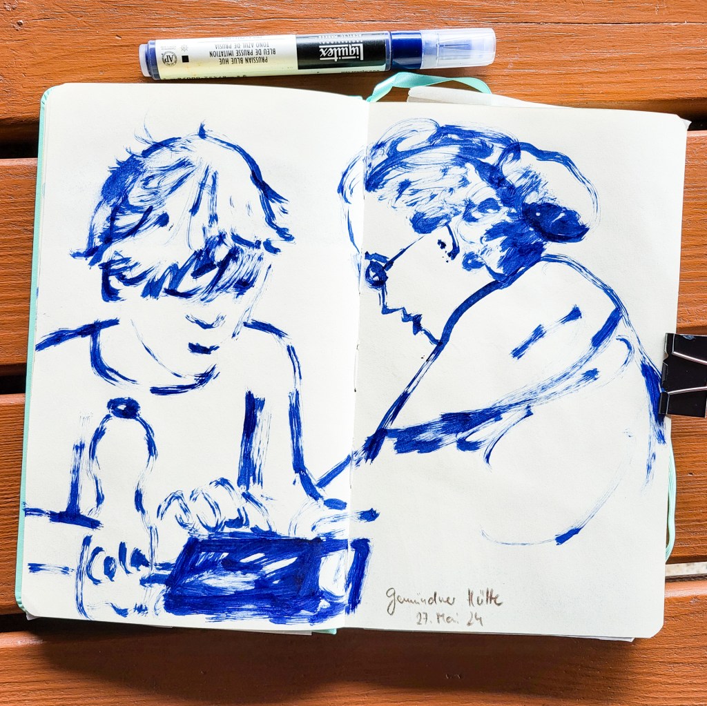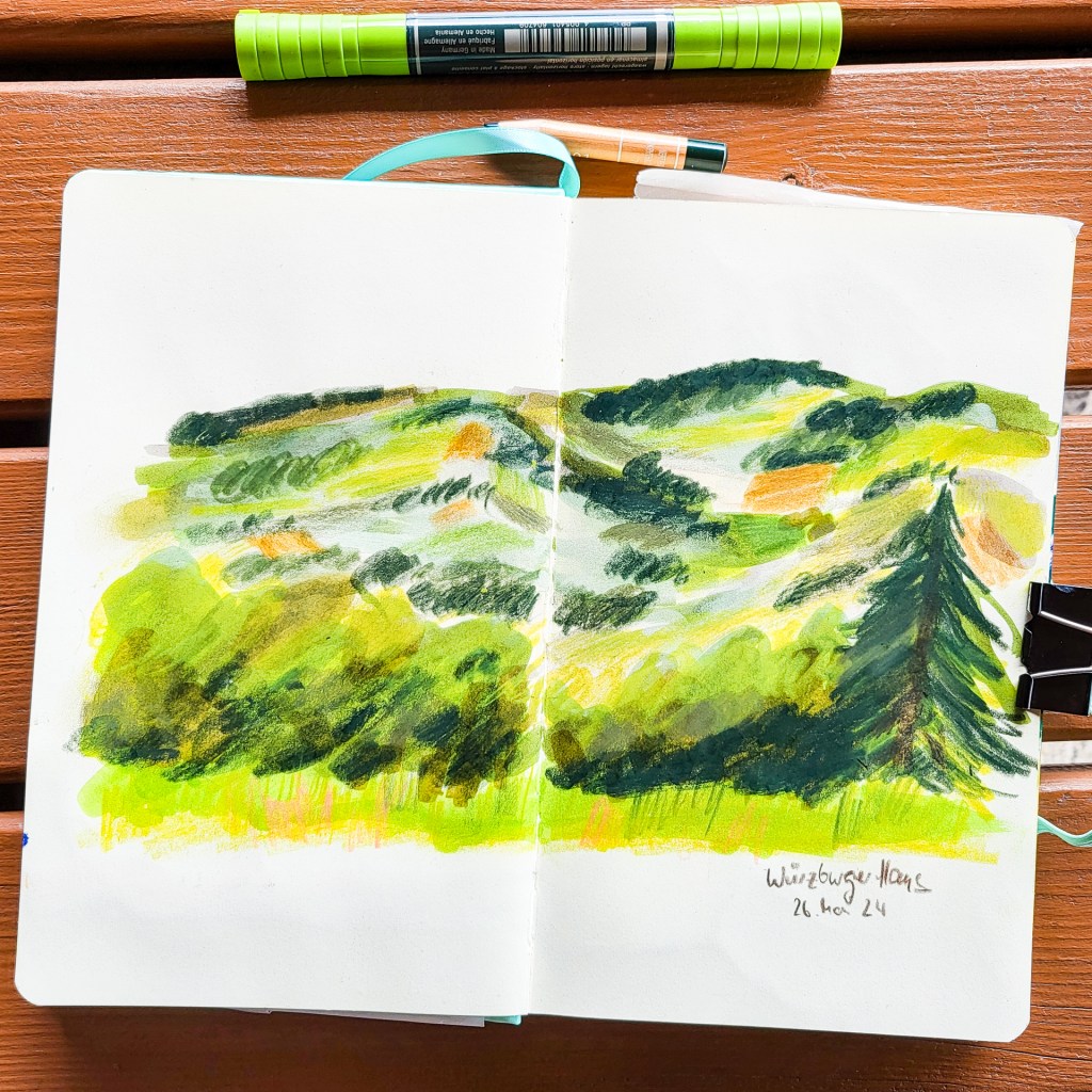 It’s been a while that I shared something from my sketchbook here. It’s not that I am not drawing, no, it’s just the small amount of time a day has…. Today I am sharing some of my sketches I did in our holidays where we’ve been at the end of May… We’ve been in the bavarian Rhön.