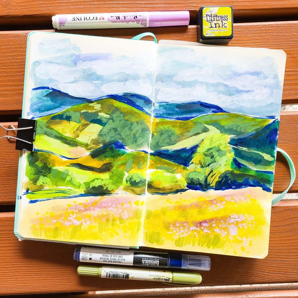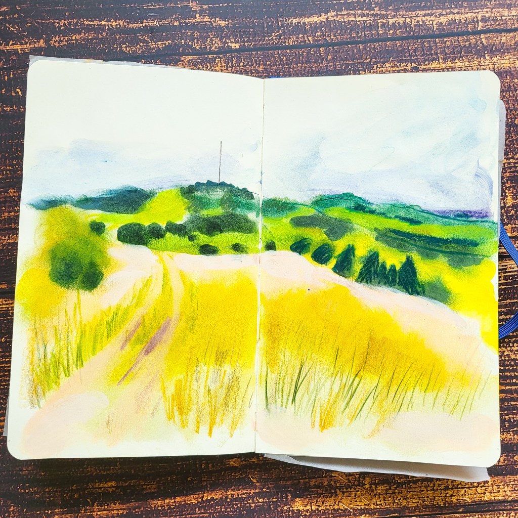 Es ist schon einige Zeit her, dass ich Seiten aus meinem Skizzenbuch gezeigt habe. Nicht, dass ich nichts gezeichnet habe, nein, ich finde manchmal einfach nicht die Zeit. 24h pro Tag sind irgendwie zu wenig. Heute möchte ich ein paar Seiten aus unserem Pfingsurlaub dieses Jahr zeigen. Wir waren in der schönen bayerischen Rhön.