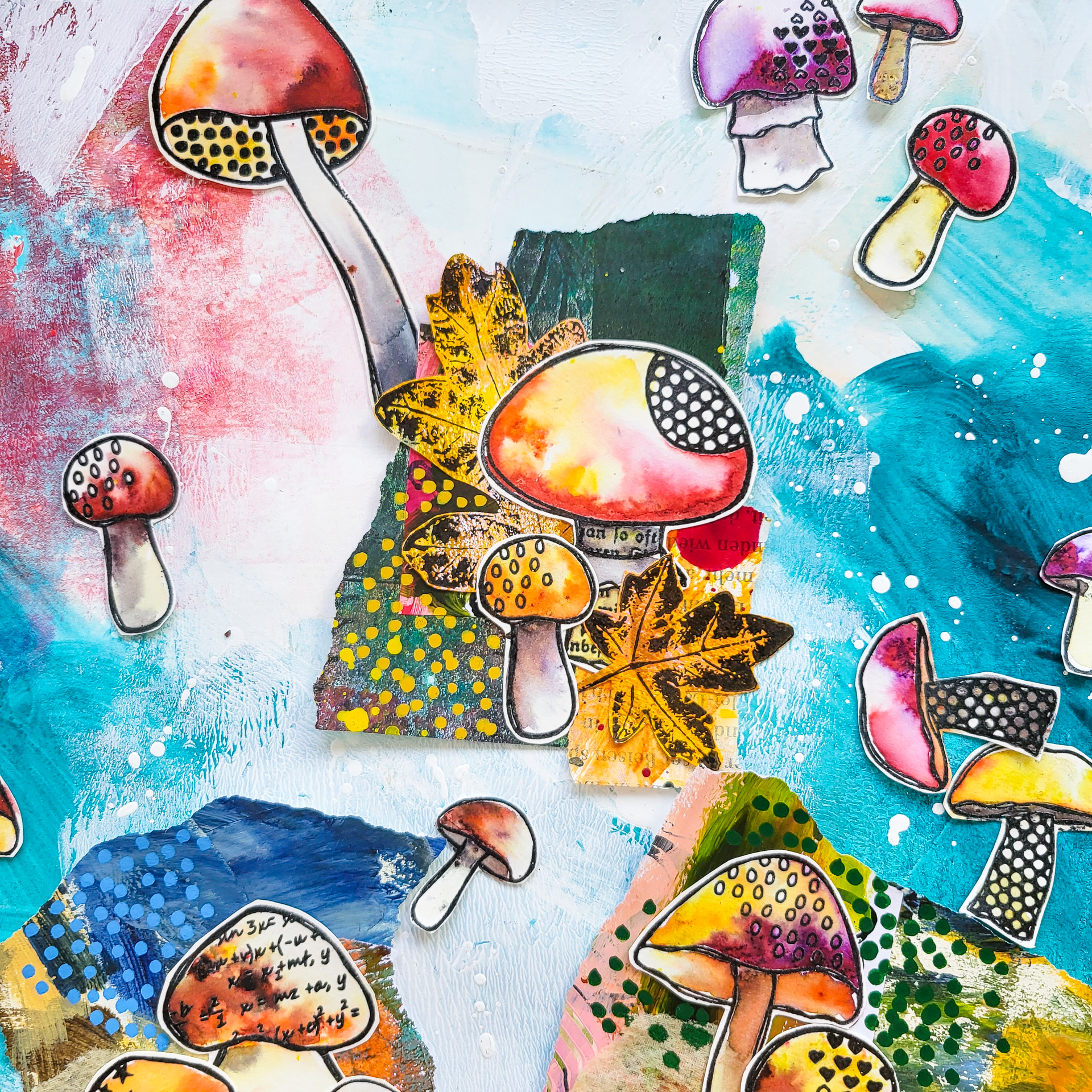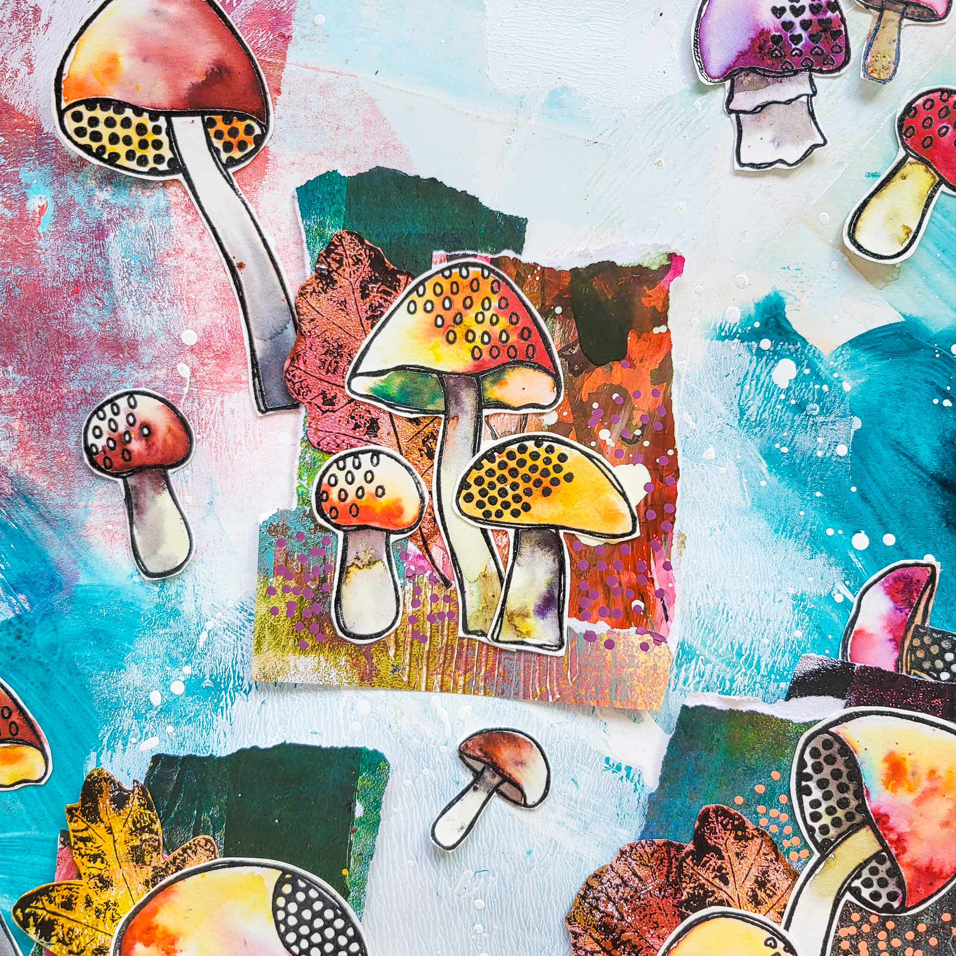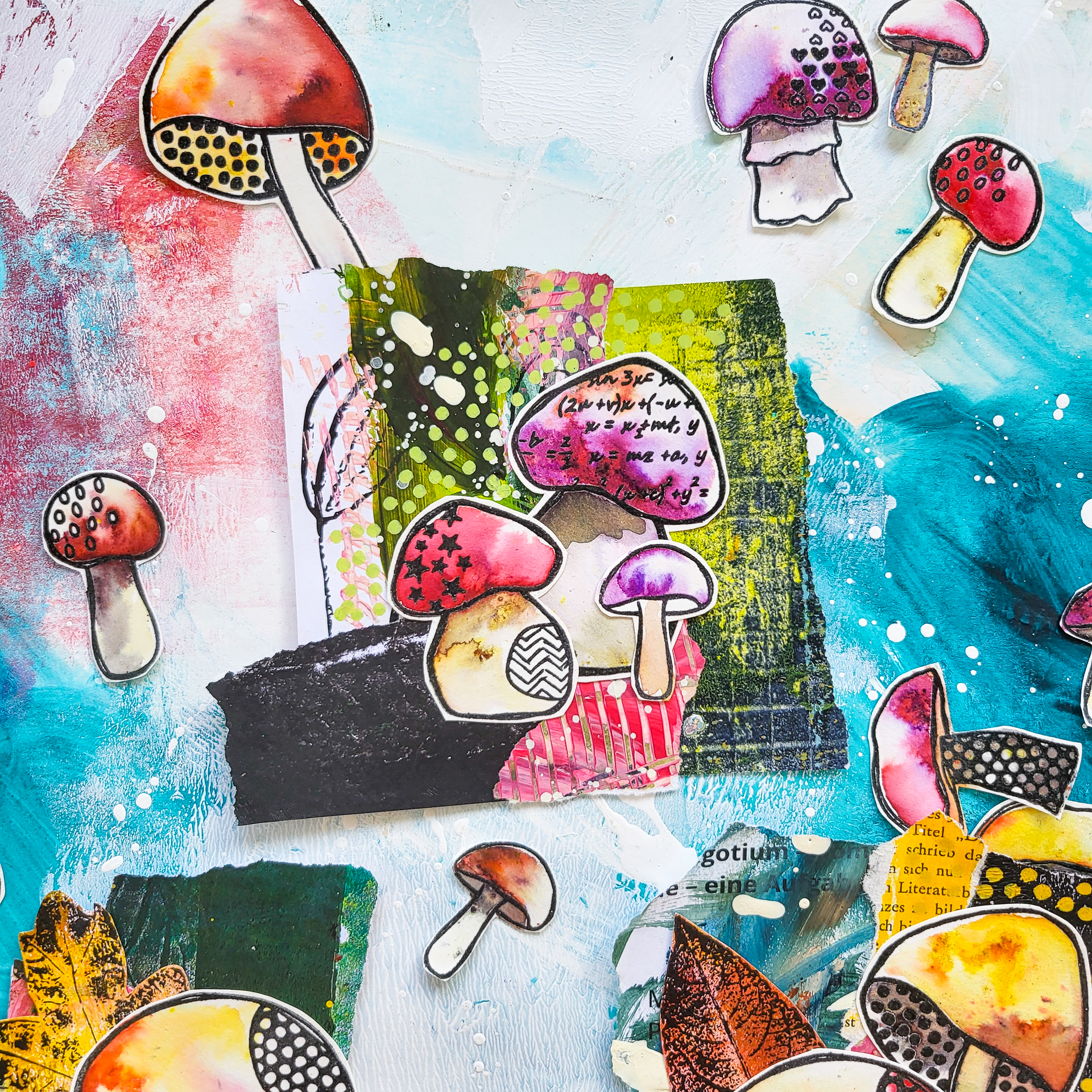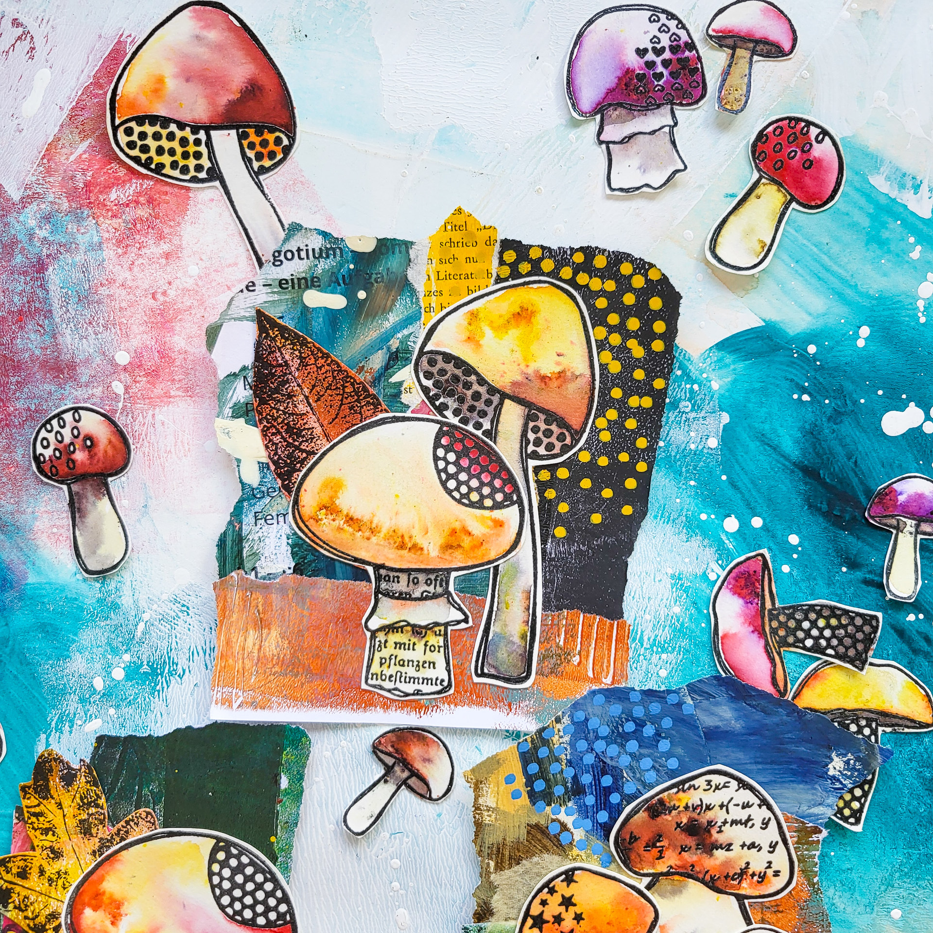Willkommen zu meinem neusten Video! Heute basteln wir uns einige Hauptmotive aus Collagepapierresten. Die lassen sich prima als Hingucker auf Art Journal Seiten, Grußkarten, im Junkjournal und auf anderen Mixed Media Projekten verwenden Meine Papiere sind hauptsächlich Gelli Prints, diese kombiniere ich mit bereits gestempelten Pilzen aus meinem neuen Textured Mushrooms Stempelset.