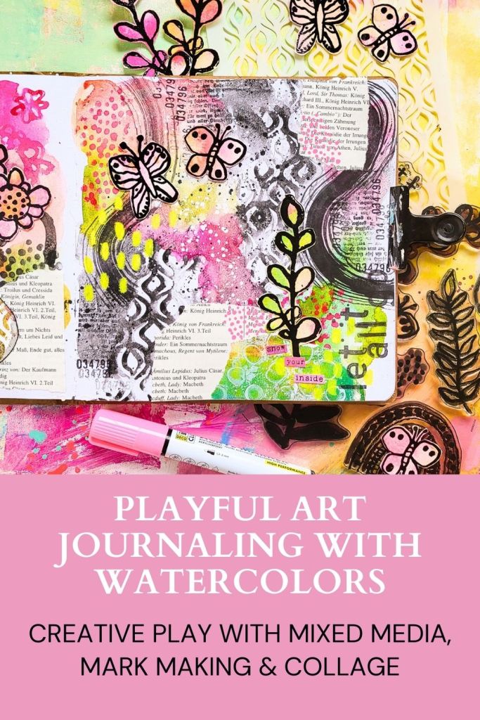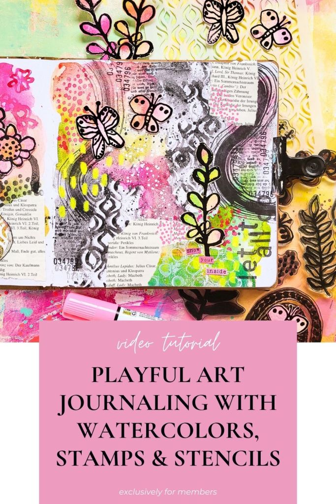 Hi everybody! I recently started a YouTube Membership on my english channel. There are two tiers available and you will find the details here . Today I am sharing an art journaling tutorial. I am creating a page with watercolors, stencil textured, mark making and collage fodder. The video tutorial is available for Mixed Media Play tier members.