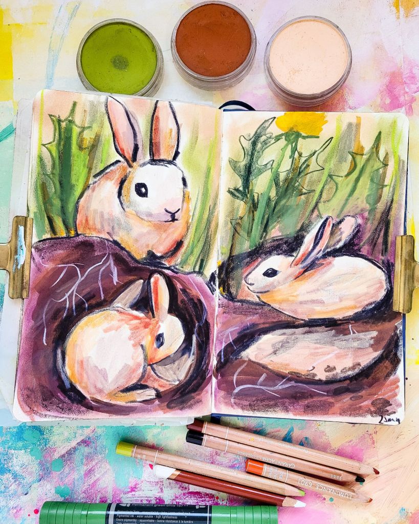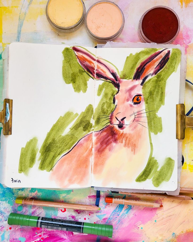 I everybody! Today I’m sharing also some of the newest drawings from my Sketchbook. I did a bunch of timed rabbit/ hare drawings the other day.