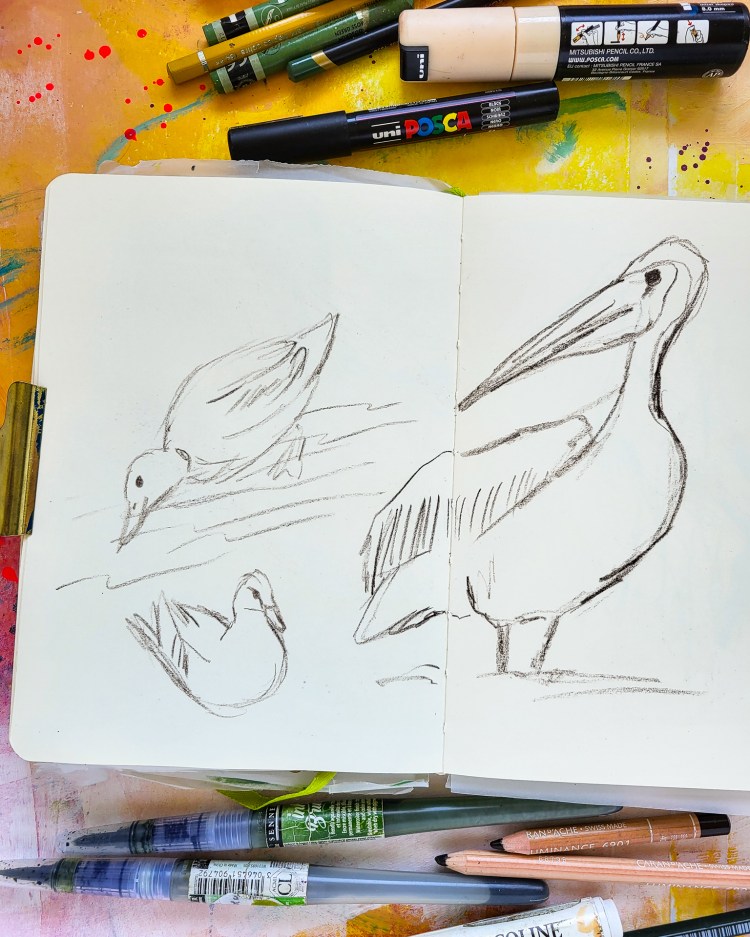 Let’s start with the sketches I did on location. I did a lot more quick pencil drawings on the go as well, but did not take photos of them.