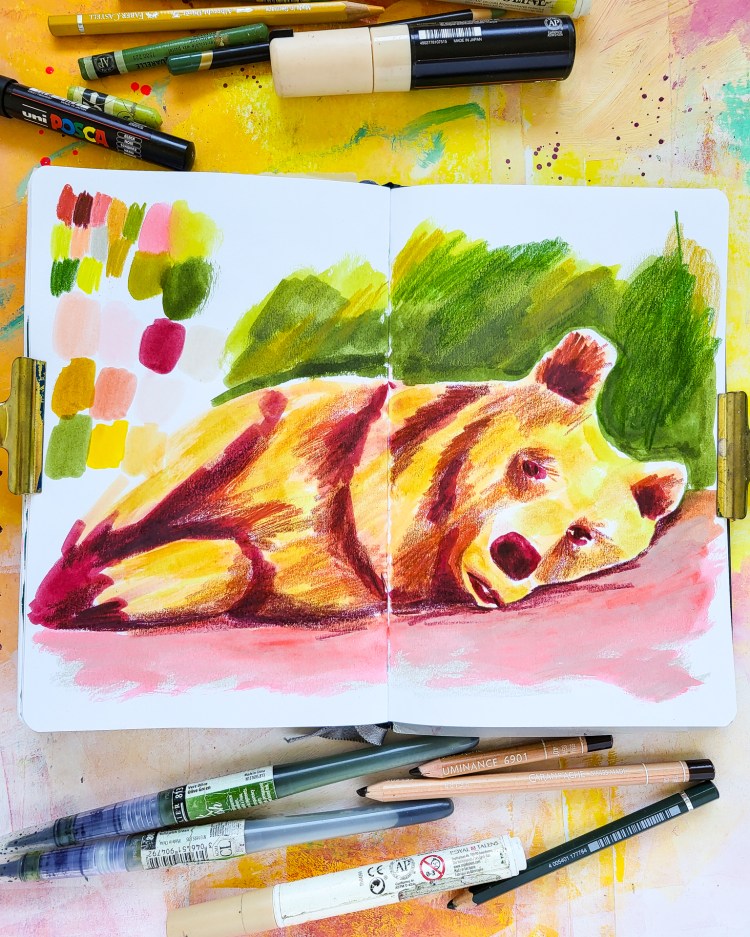 I everybody! We’ve recently visited a small Zoo near us were we haven’t been for years! Of course I had my sketchbook and quite a lot of markers and colored pencils with me and was able to do some sketching!