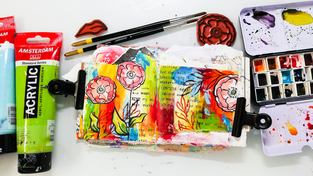 I’m sharing a new art journaling video over on my YouTube channel today. It’s a lot inspired by a class from Toni Burt I watched over on Skillshare. I have a two free month trail for you here. I worked with stamps to create the background and the Arteza gouache paint.