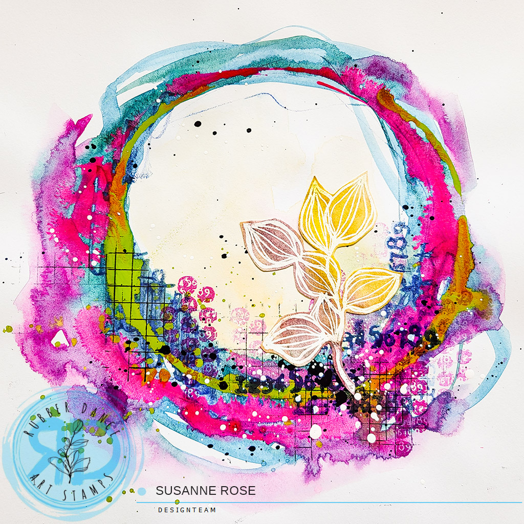 Hi there, Susanne here with a beginner friendly art journaling tutorial using an art journal from Action with watercolors directly on the paper. I’m creating an abstract layout and combine this with some stamps and mark making. It’s a very easy and relaxing process! Perfect to create some art when there’s not much time.