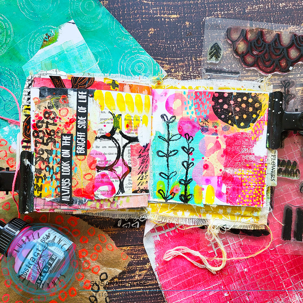 A really fun way to start a sketch is working on a preped background. That means I already have something going on and I can work with. It makes it easier to start a spread because it’s not blank anymore and it often leads to unexpected results. I have put two videos in the post to give you a little demo on how I made the backgrounds for the two spreads I am sharing today.