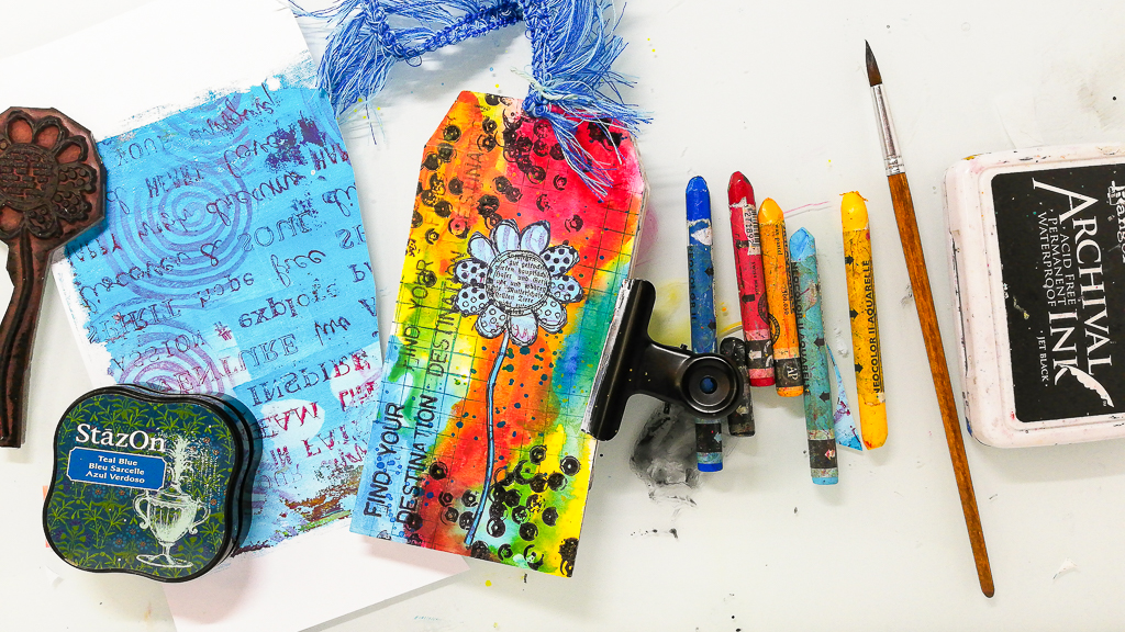 Continue reading “Easy Mixed Media Art Journal Page – Video Tutorial”Easy Tag Journal Cover using Neocolor Crayons