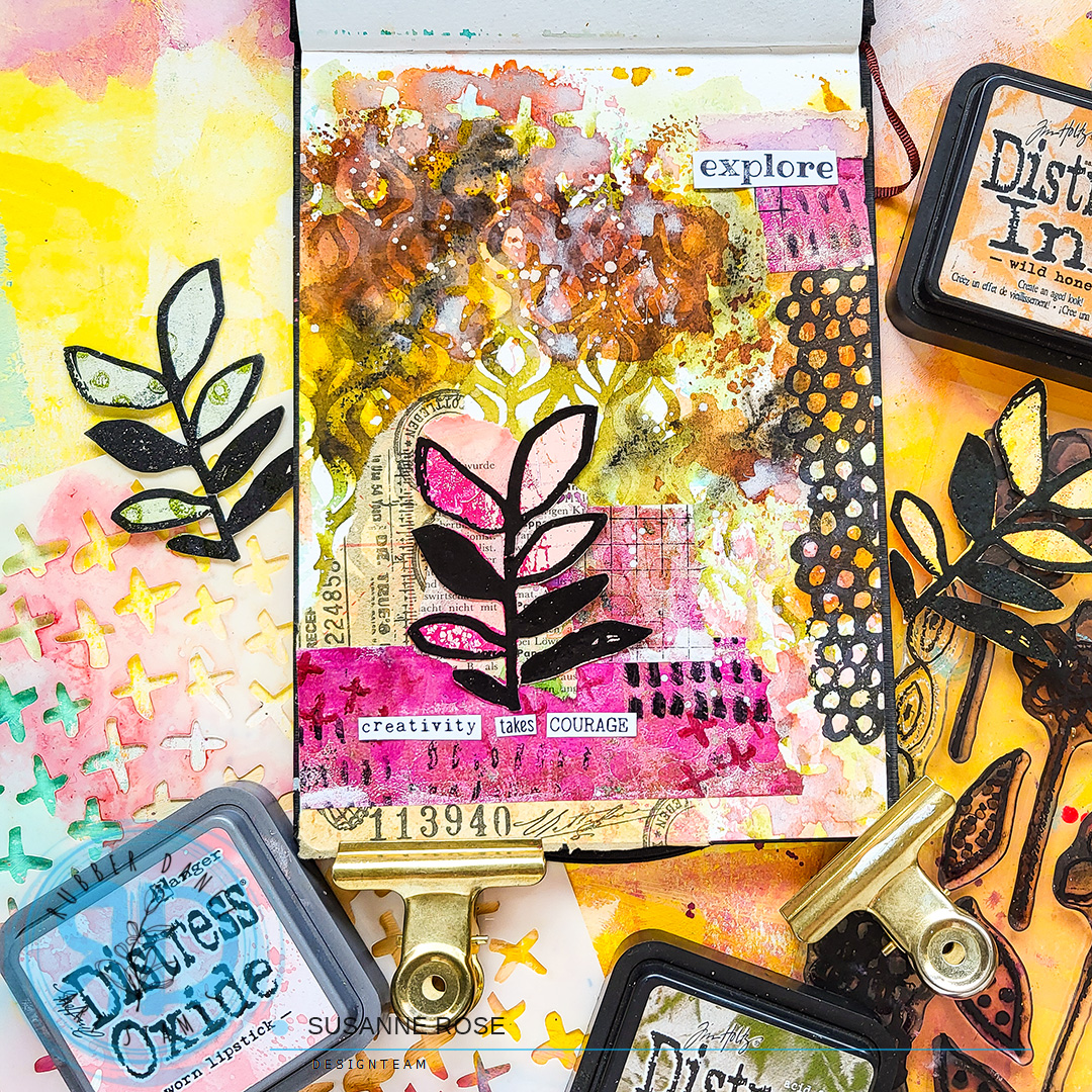 Hi everyone! Me again – I know today it’s a bit busy here… I am sharing a new art journaling video over on the Rubber Dance Shop blog today! I play with our Ornament stencil, Distress Inks, collage and stamps. Jump over and have a look at it!