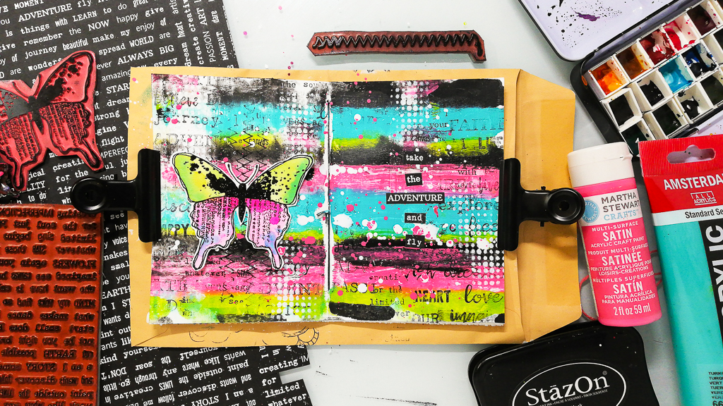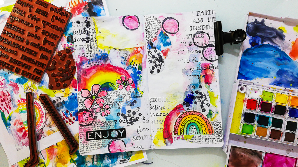 Today I’m creating a very easy and quickly made art journal page with an acrylic paint background. It’s perfect for beginners and a good recipe to create other pages in a similar way. The acrylic paint is applied with a brayer. I added texture with some stamps and also a stencil. Finally I added theContinue reading “Easy Art Journal Page for Beginners – Mixed Media Video”