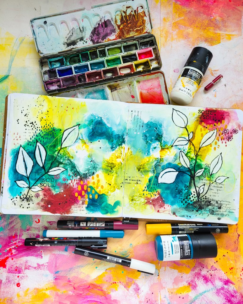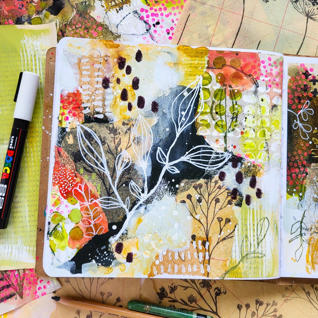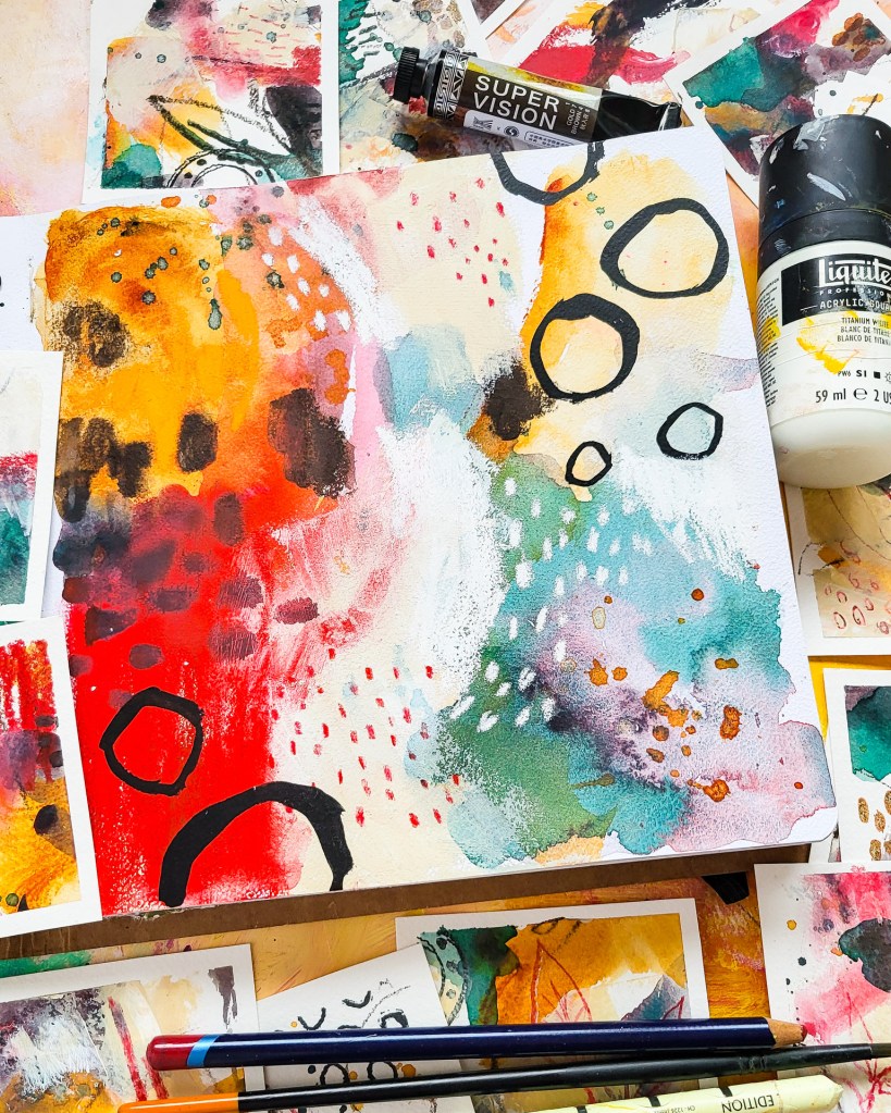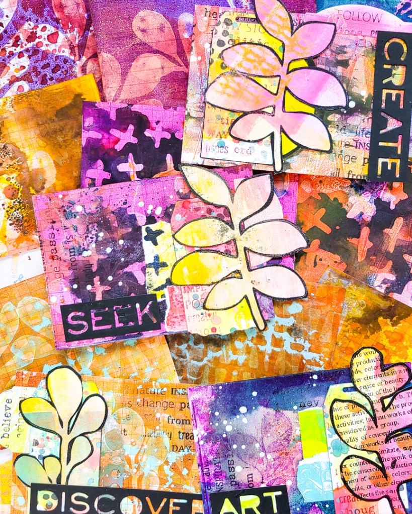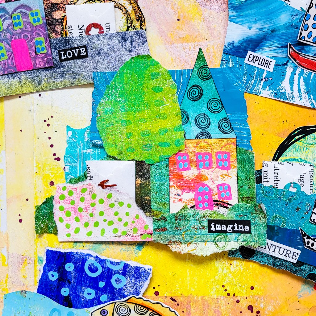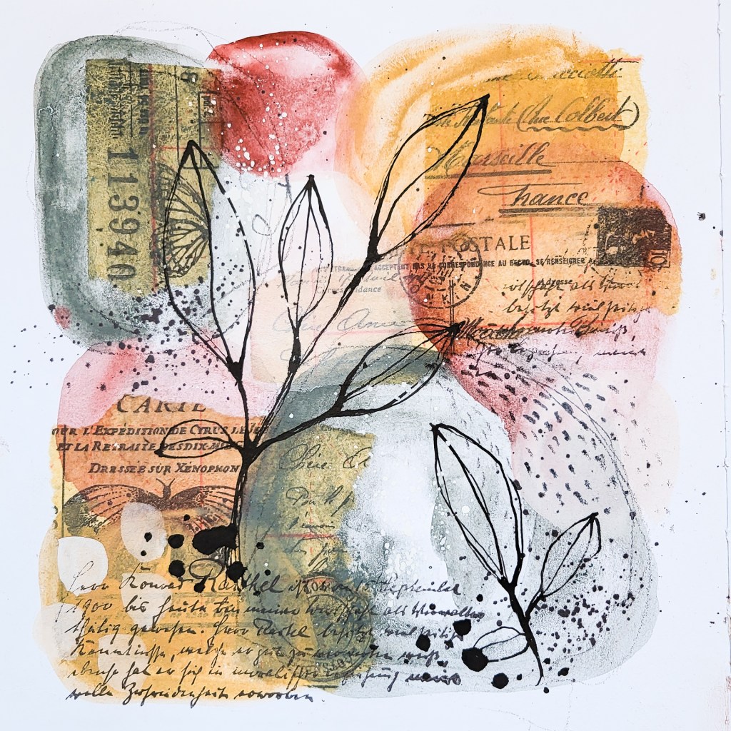 Join my monthly membership over on YouTube for more in depth process videos and tutorials all around mixed media, collage, art journaling and watercolor. Scroll down for an overview on the different projects.